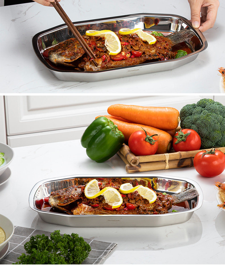 Рыбное блюдо на пару бытовое нержавеющая сталь 304 большое утепленный Рыбная тарелка овальная квадратная плюс темно Блюдо новая коллекция Рыбная тарелка