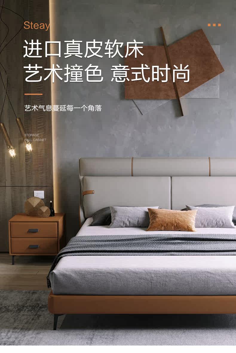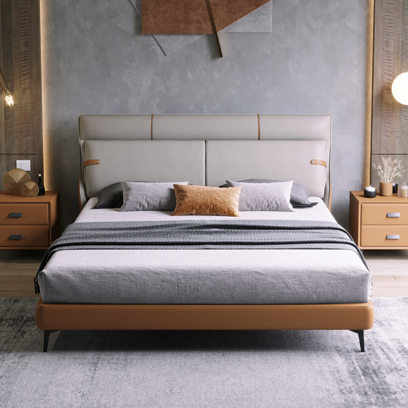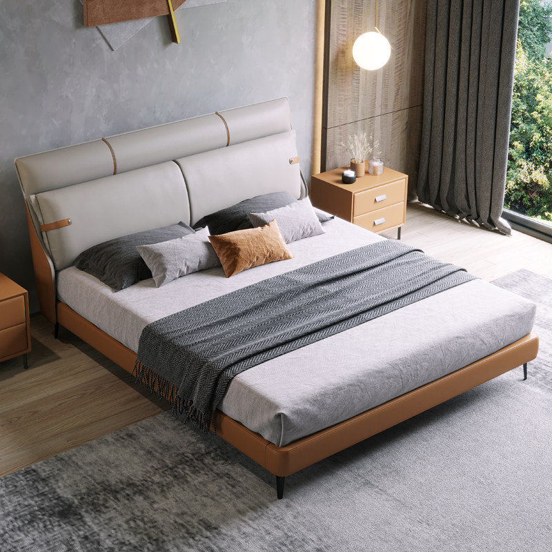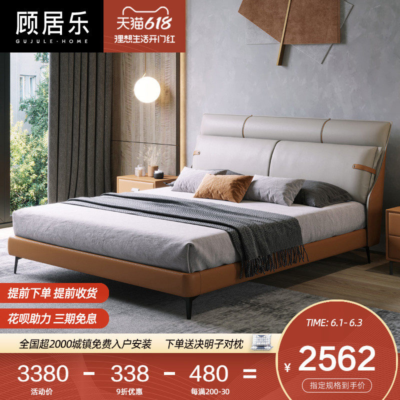 Это очень просто из натуральной кожи Кровать легкая роскошная двуспальная кровать Северная Европа поколение Простой 1,8-метровой свадьбу свадьбы пакет сеть красный кровать