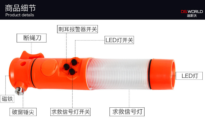 Автомобиль полностью Hammer Car Fire FlageLight Mini Wating Life, чтобы избежать многофункционального стекла окно Запасы