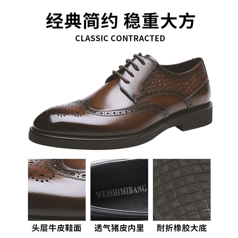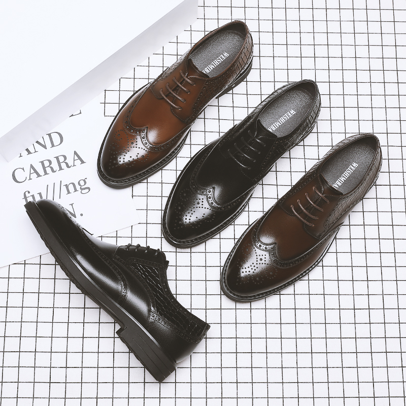 Лето кожаная обувь мужской из натуральной кожи Бизнес официальный стиль Blok резные полые воздухопроницаемый английский стиль Приращение высокая новый Ланг свадебное обувь