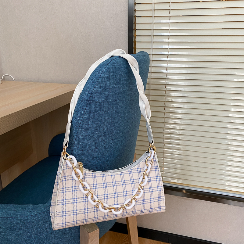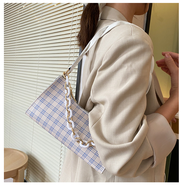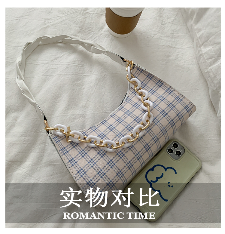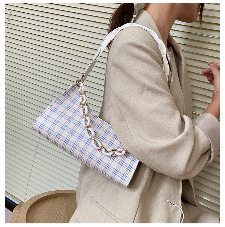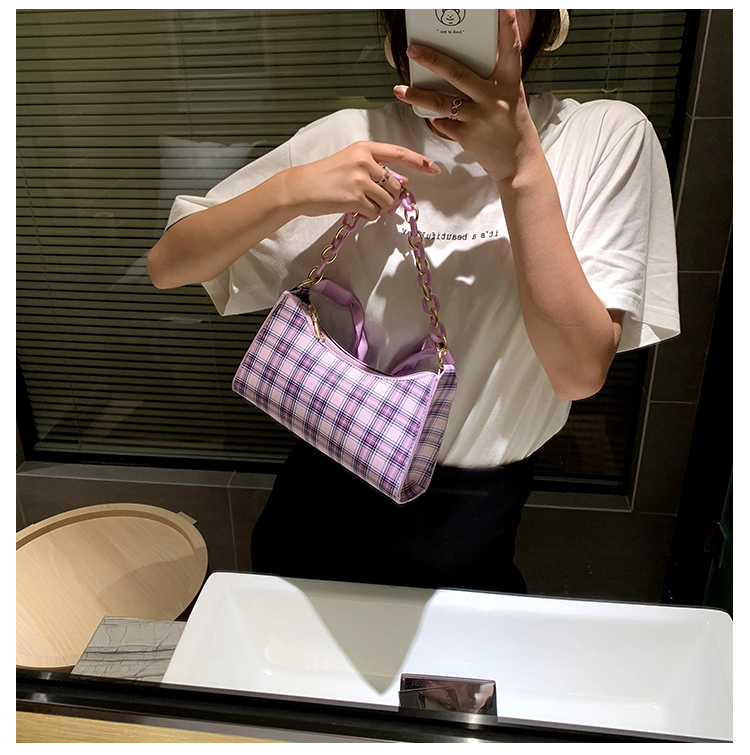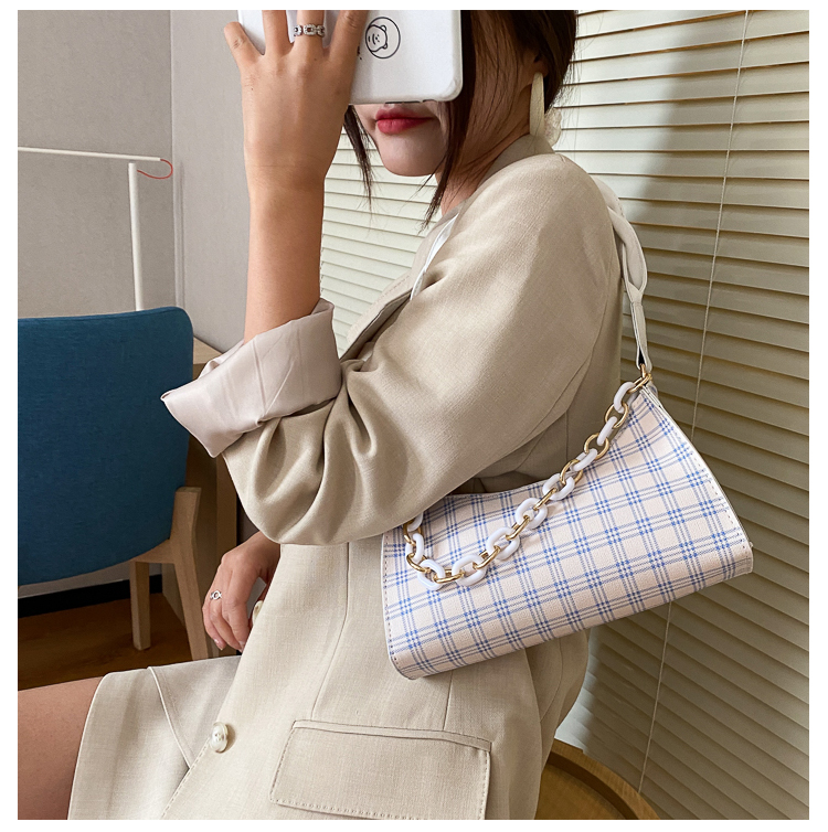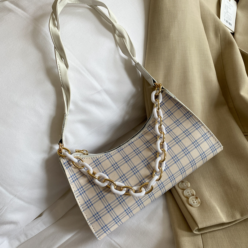 Французский женский небольшой пакет пакет 2021 новая коллекция прилив популярный клетчатый Подмышечный низ пакет меньшинство высокая Чувство класса один Плечо багет девочка пакет