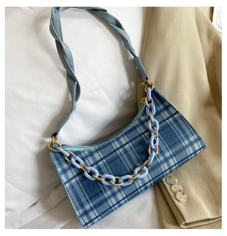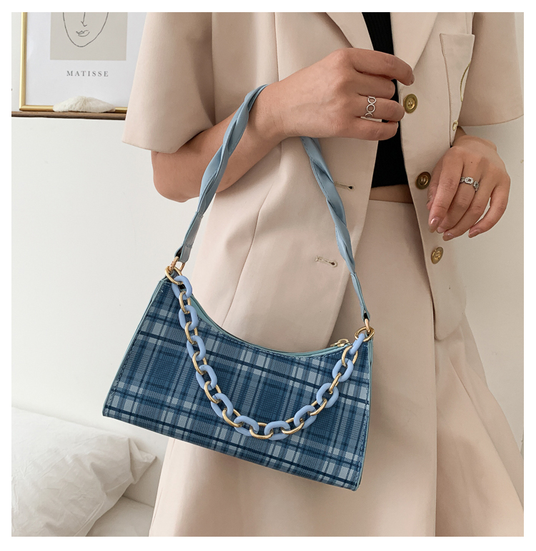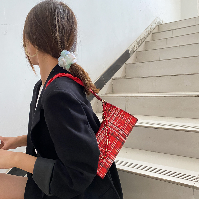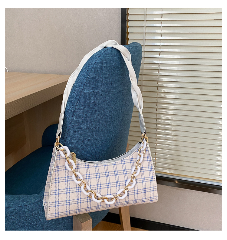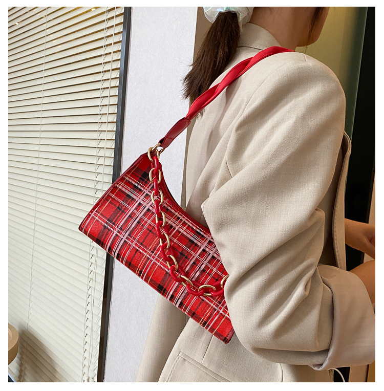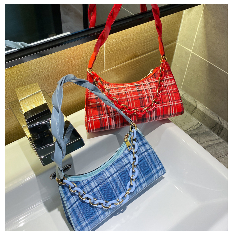 Французский женский небольшой пакет пакет 2021 новая коллекция прилив популярный клетчатый Подмышечный низ пакет меньшинство высокая Чувство класса один Плечо багет девочка пакет