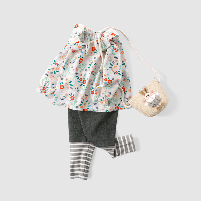Женское сокровище сорочка длинный рукав демисезонный Пакет на девочку Цветочный верх Одежда маленькая девочка рубашка чистый хлопок детские детские Кукла