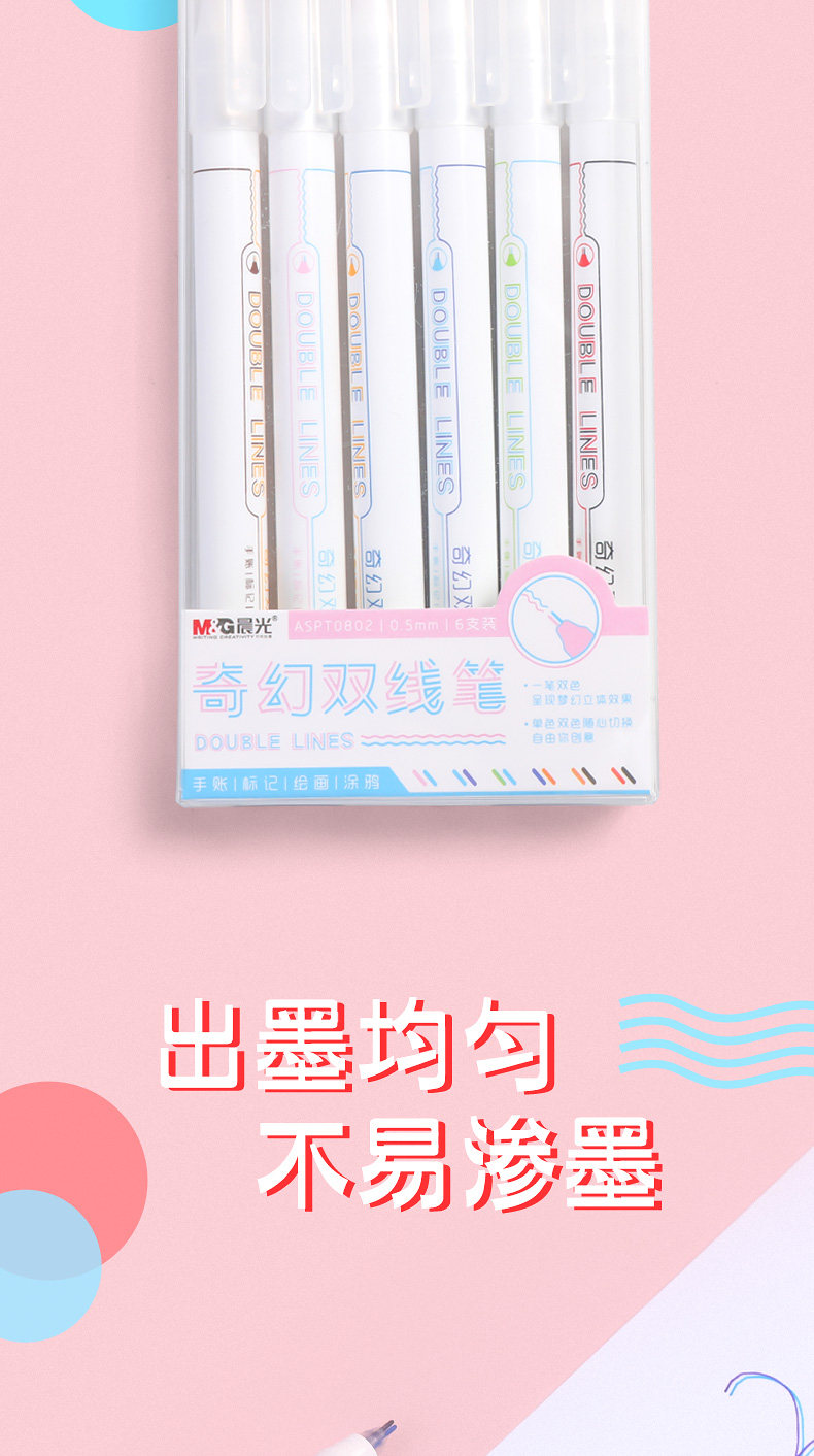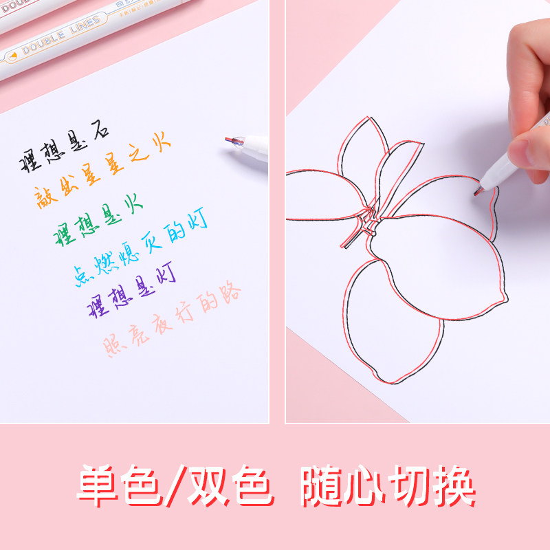 Контурная ручка Chenguang Double Line Fiber Contour Pen разноцветный стандартный Ручка для заметок комплект Студенты используют многоцветный маркер двухцветный творческий справочник для Мечтательная мигающая одноцветная двухцветная ручка двойного назначения