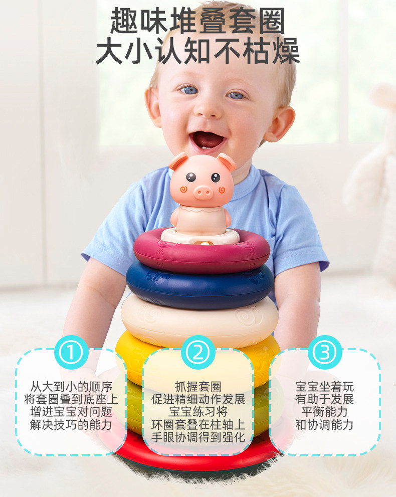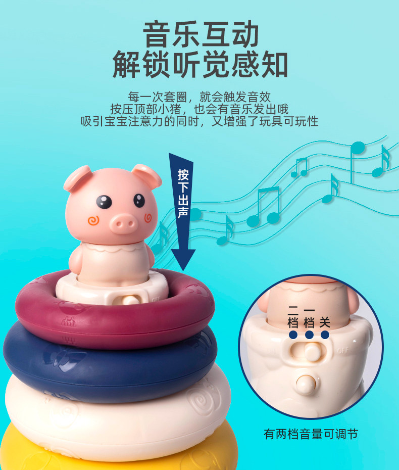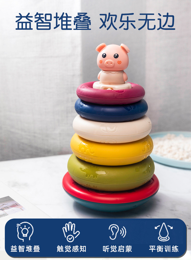 На младенца Детская игрушка сложена имеет Звуковая крышка башни кольцо головоломки Раннее образование 1 2 и половину мужской Ребенок детские 12 месяцев