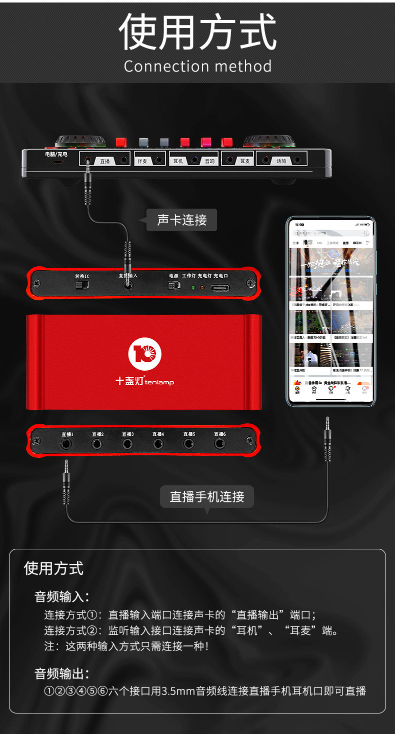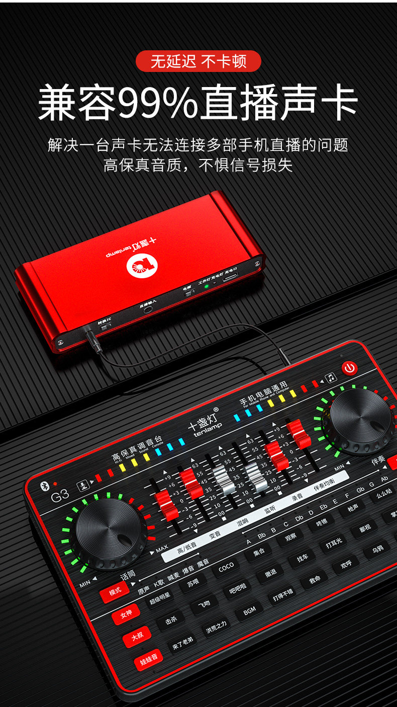 Десять свет Переключатель K SONG LIVE BREATCTVES ОБОРУДОВАНИЕ полностью Пение звуковой карты для Компьютерная настольная сеть красный Объявление Универсальный артефакт Shake Запись Микрофон Один микрофон работает Профессиональное оборудование