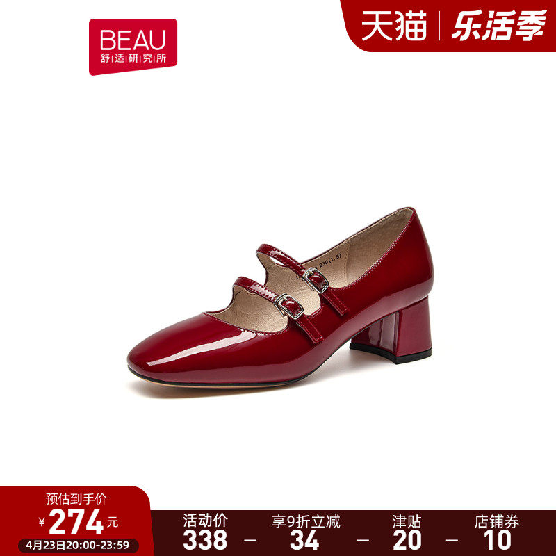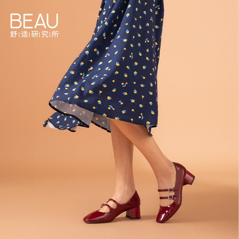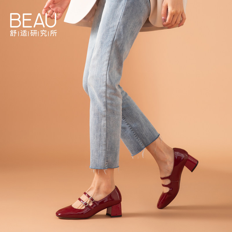 Beau французские туфли Мэри винтаж английский стиль Средний каблук туфли женский широкий каблук из натуральной кожи на высоком каблуке обувь красный Свадебные туфли
