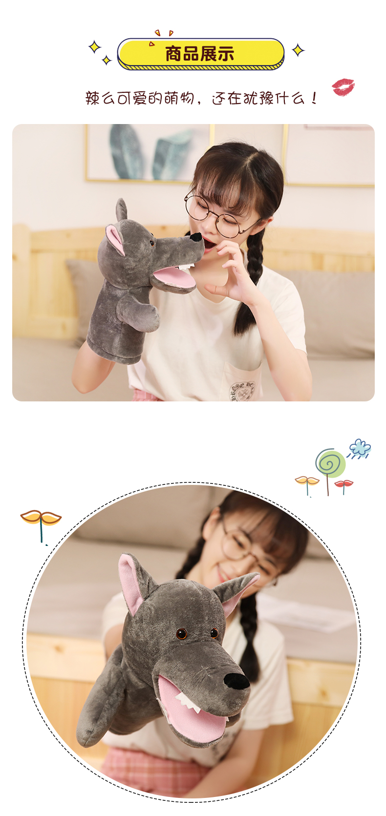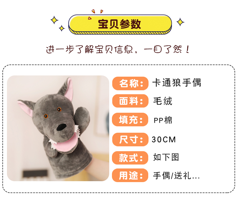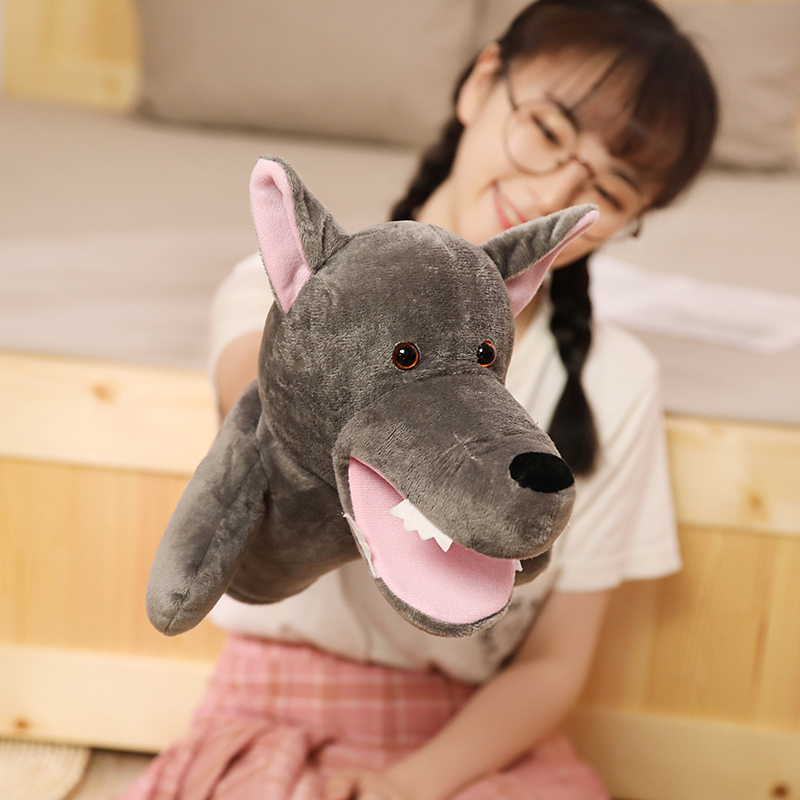 Большой серый волк рука плюшевые Игрушечный рот может двигаться перчатки Кукла детский сад детские Выполнение кукол родитель-ребенок взаимодействие