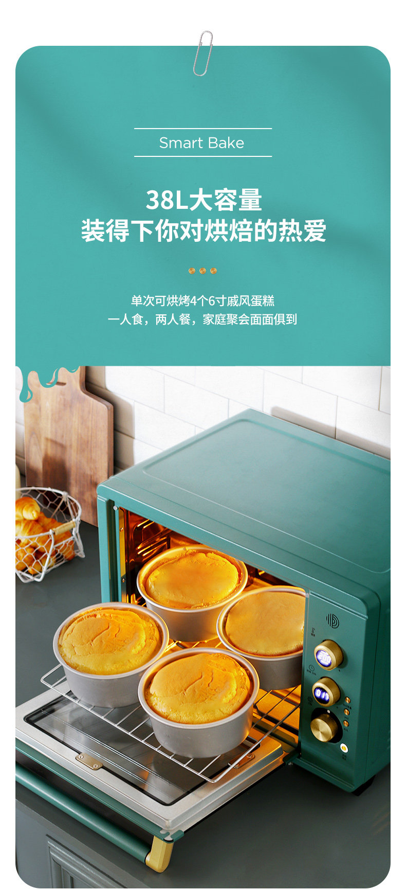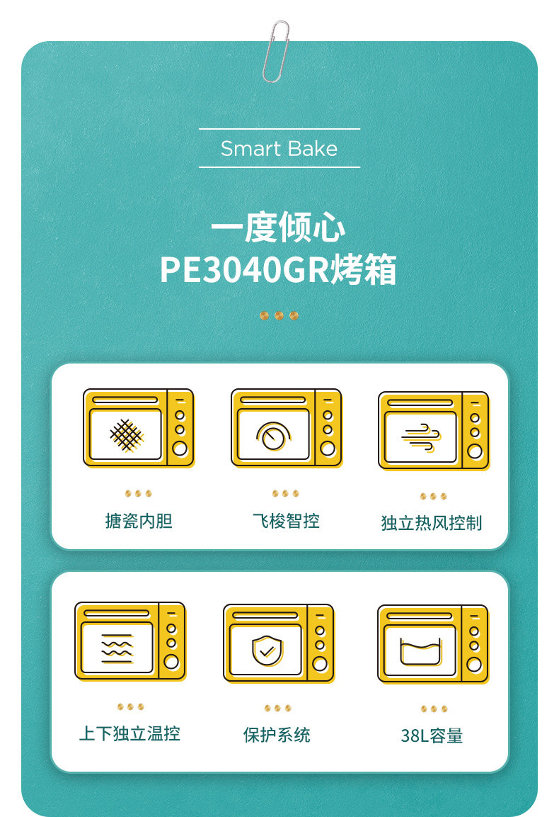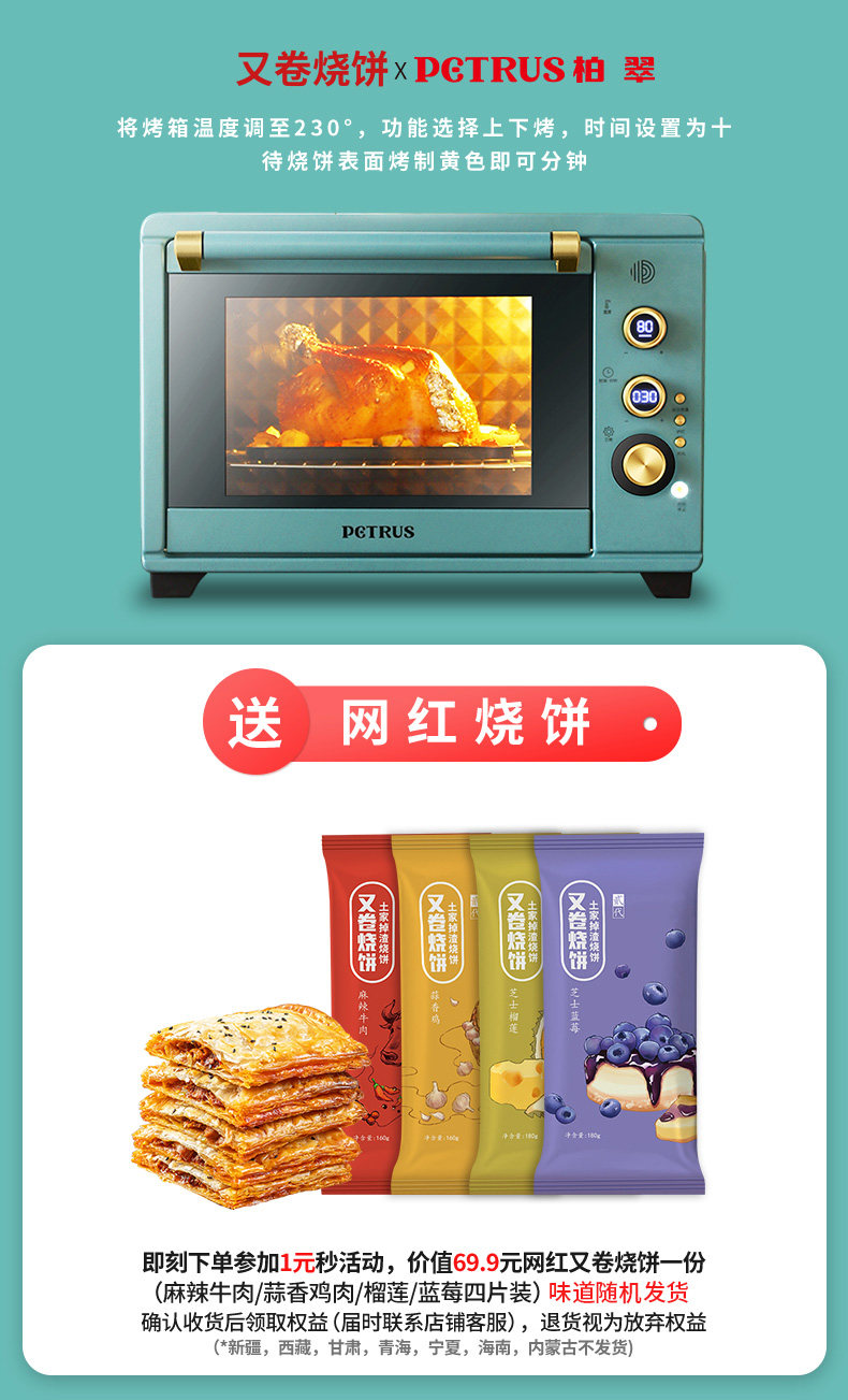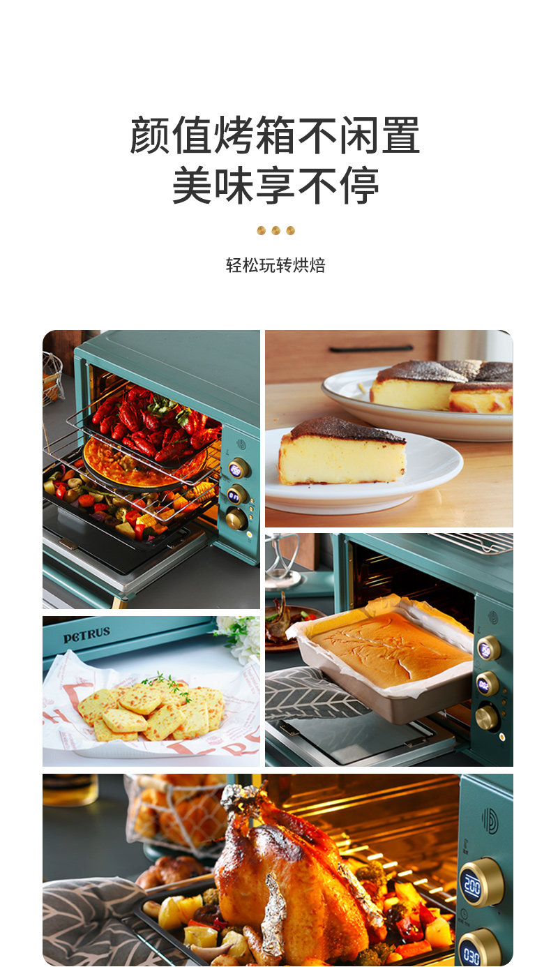 Электрическая духовка Baicui PE3040GR бытовая винтаж Выпечка многофункциональная полностью автоматическая Умный торт большой емкости