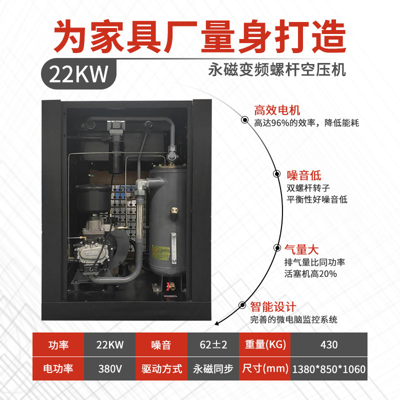 Нанкинский винтовой воздушный компрессор 15/22 / 37KW промышленного класса Большой 380 В постоянное изменение магнита частота Воздушный компрессор воздушного насоса