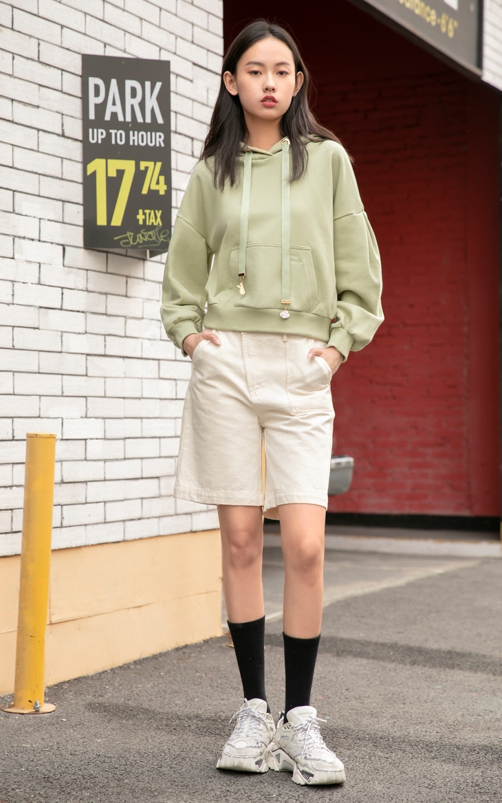 ТОЛЬКО2021 весна новая коллекция Сплошной цвет капюшон Распущенная голова для отдыха толстовка Женщины, три километра | 12119S039