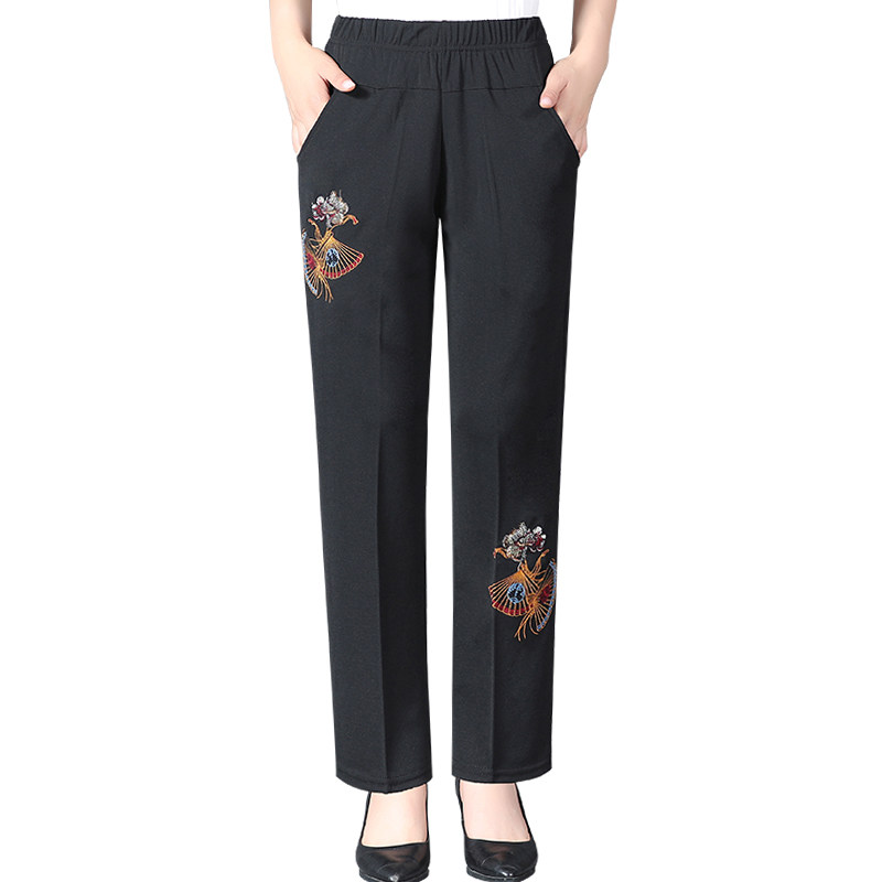 Бабушка осенние брюки свободно среднего возраста демисезонный Вышитые брюки свекровь, жена, жена, мама высокая Талии штаны