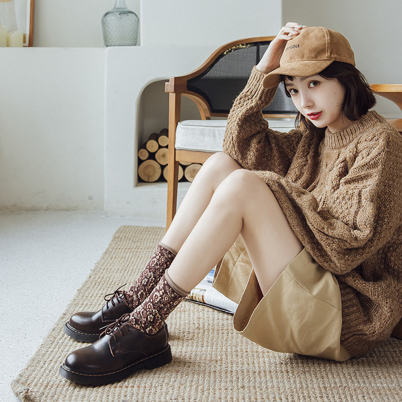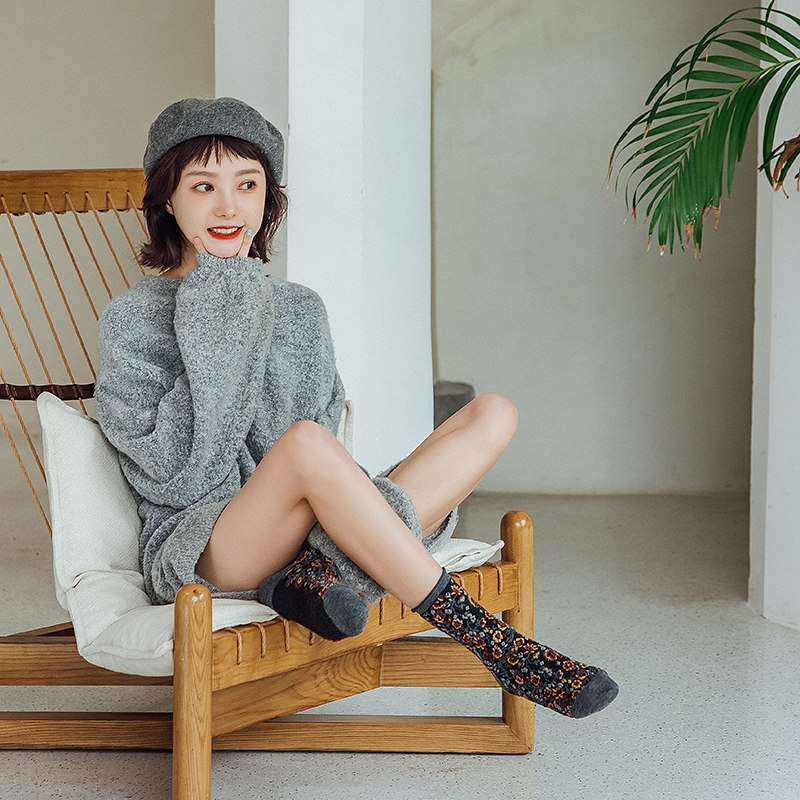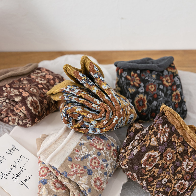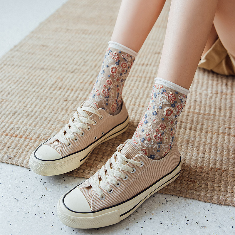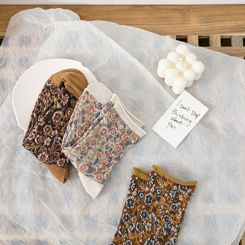 Японский винтаж Стиль-стиль цветочный лес, пасторальный стиль, скрученные складки цветов. средние носок