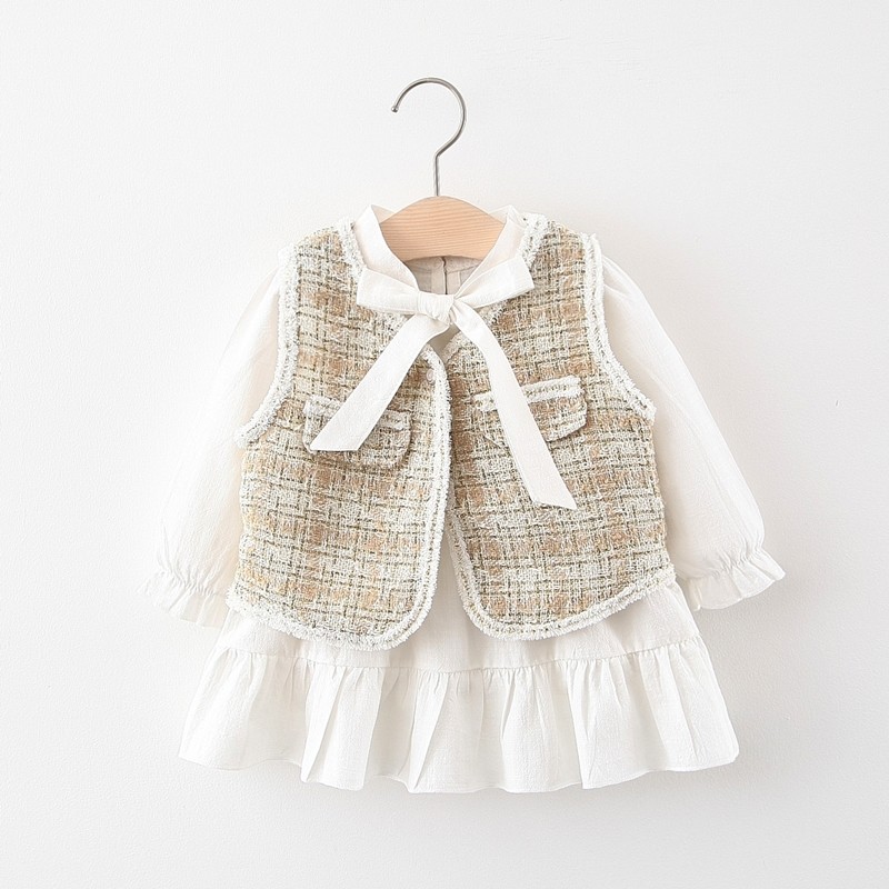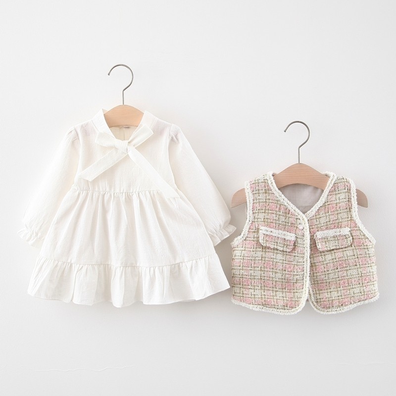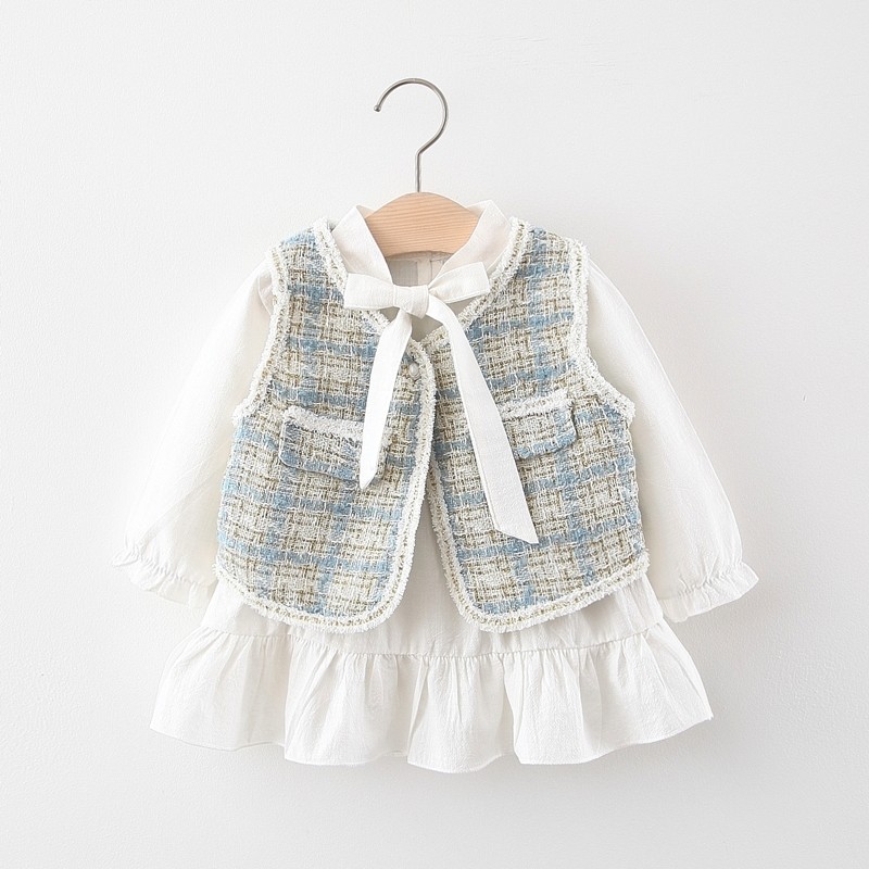 Женский детские Платье в западном стиле 1 год 2 демисезонный детские Жилет юбка на младенца для маленькой принцессы юбка на девочку Осенняя одежда комплект прилив