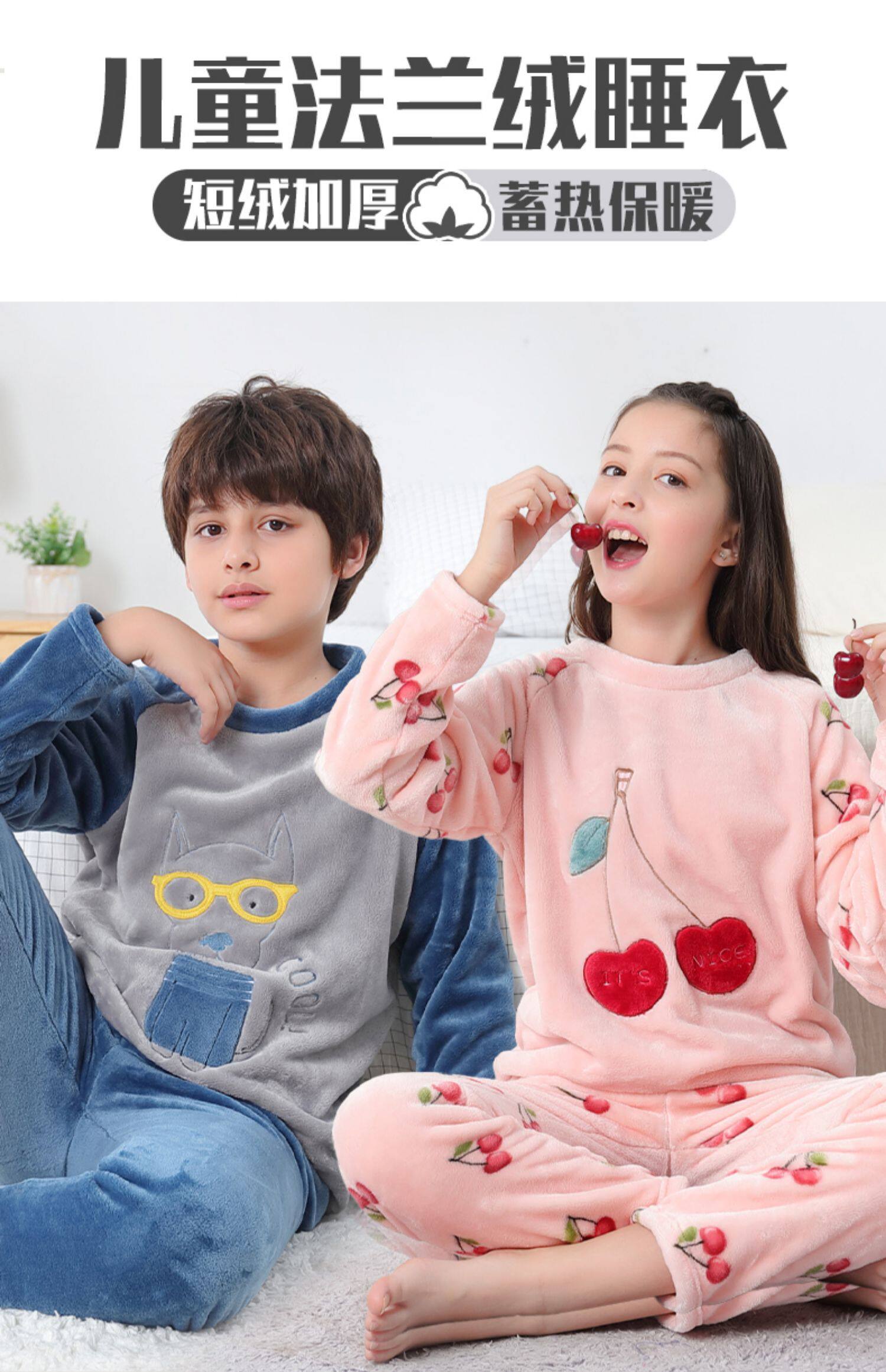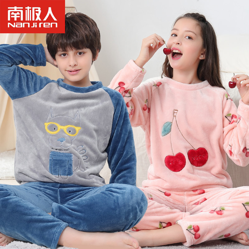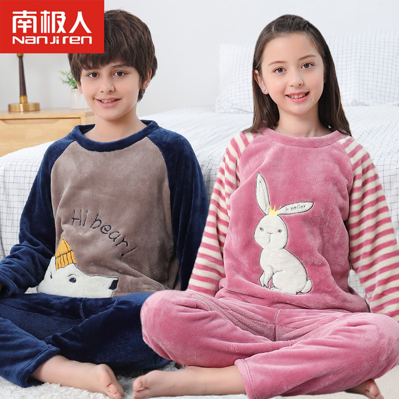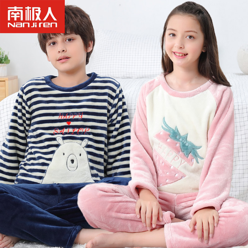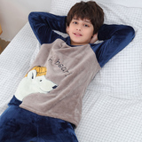 Детские Французская пижамас утепленный зима стиль замшевый мужской ребенок осень-зима время года на мальчика Коралловый бархат на девочку Домашняя служба большие дети