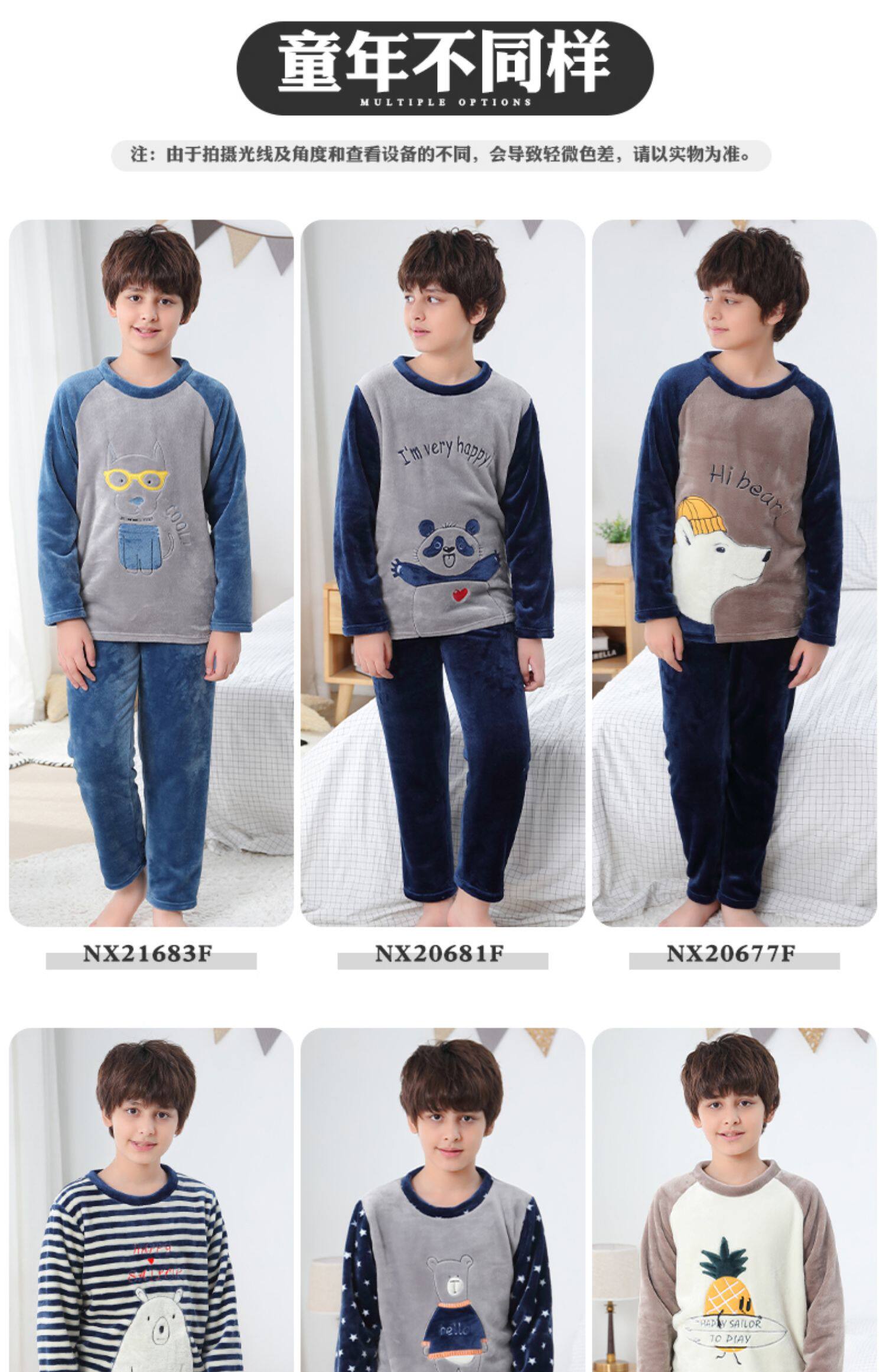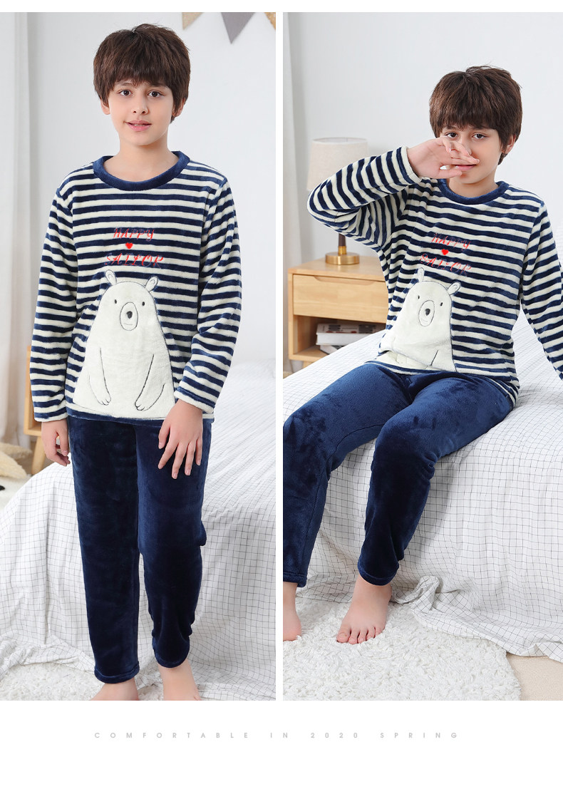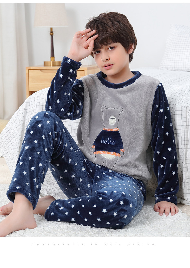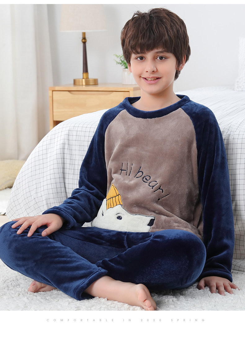 Детские Французская пижамас утепленный зима стиль замшевый мужской ребенок осень-зима время года на мальчика Коралловый бархат на девочку Домашняя служба большие дети