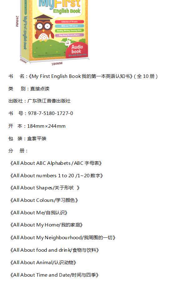 Мой первый комплект English Cognitive Book Моя первая книга на английском Двуязычное чтение полностью 10 английских просветительских книжек с картинками для детей