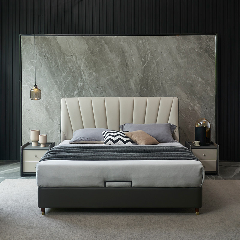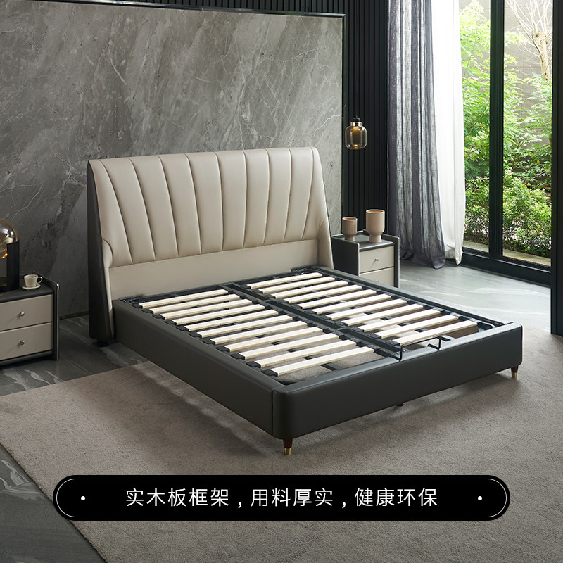 Северная Европа из натуральной кожи В главной спальне установлена двуспальная кровать шириной 1,8 метра. поколение Светлая роскошная мебель в итальянском стиле 1,5 метра с мягкой спинкой пакет кровать