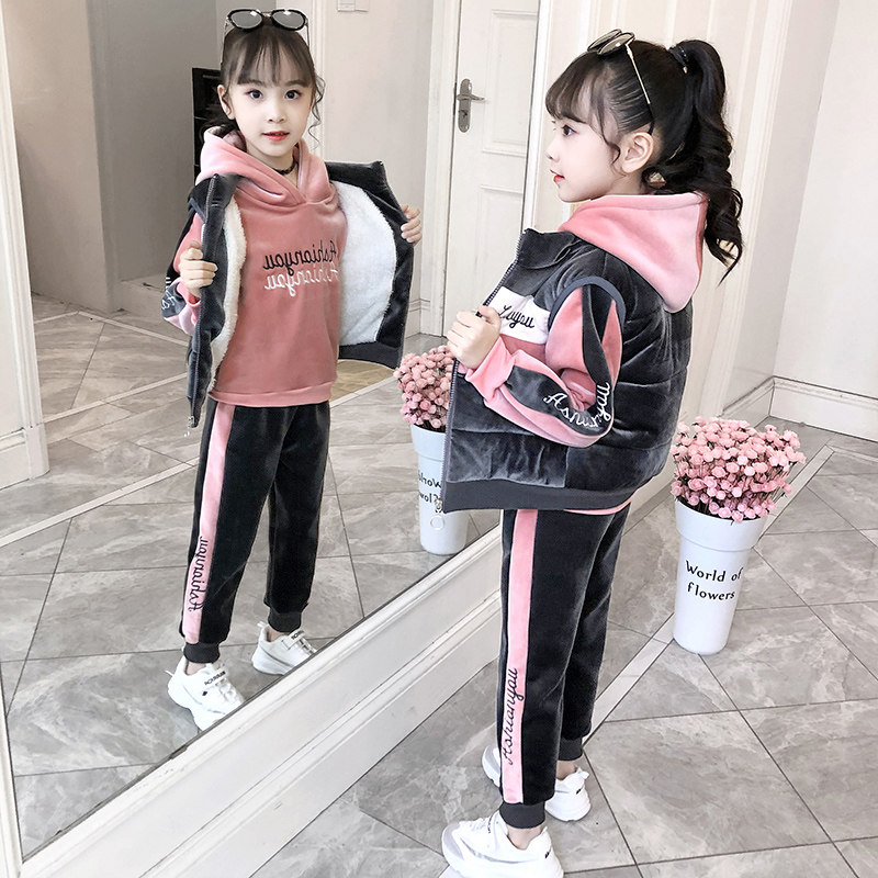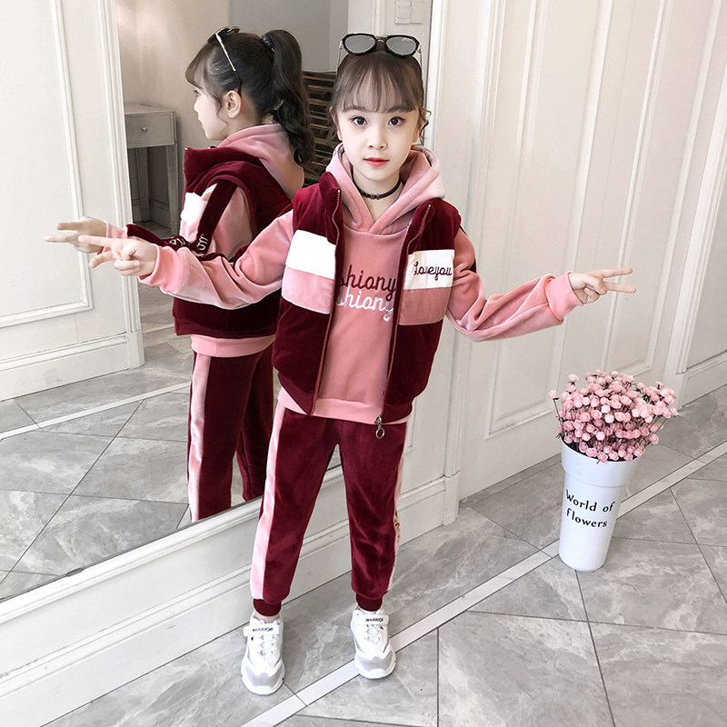 На девочку Золотой бархат комплект спортивный 3 накладки осень-зима Пакет утепленный 2021 новая коллекция западный стиль корейская версия детские Жилет Tide.