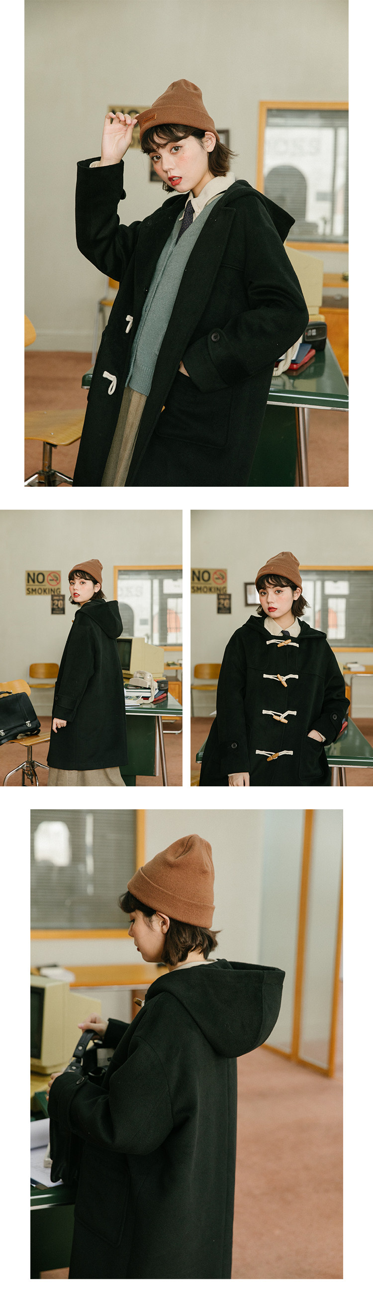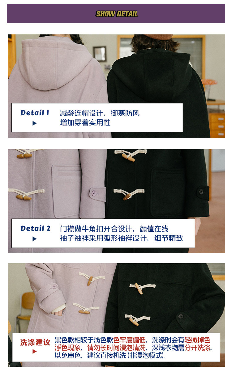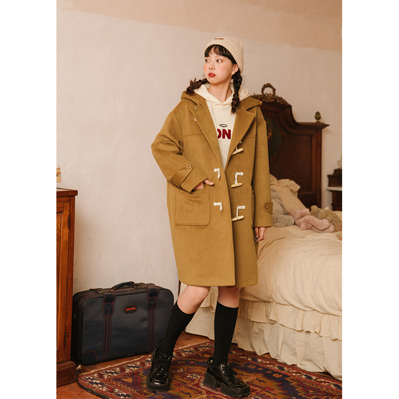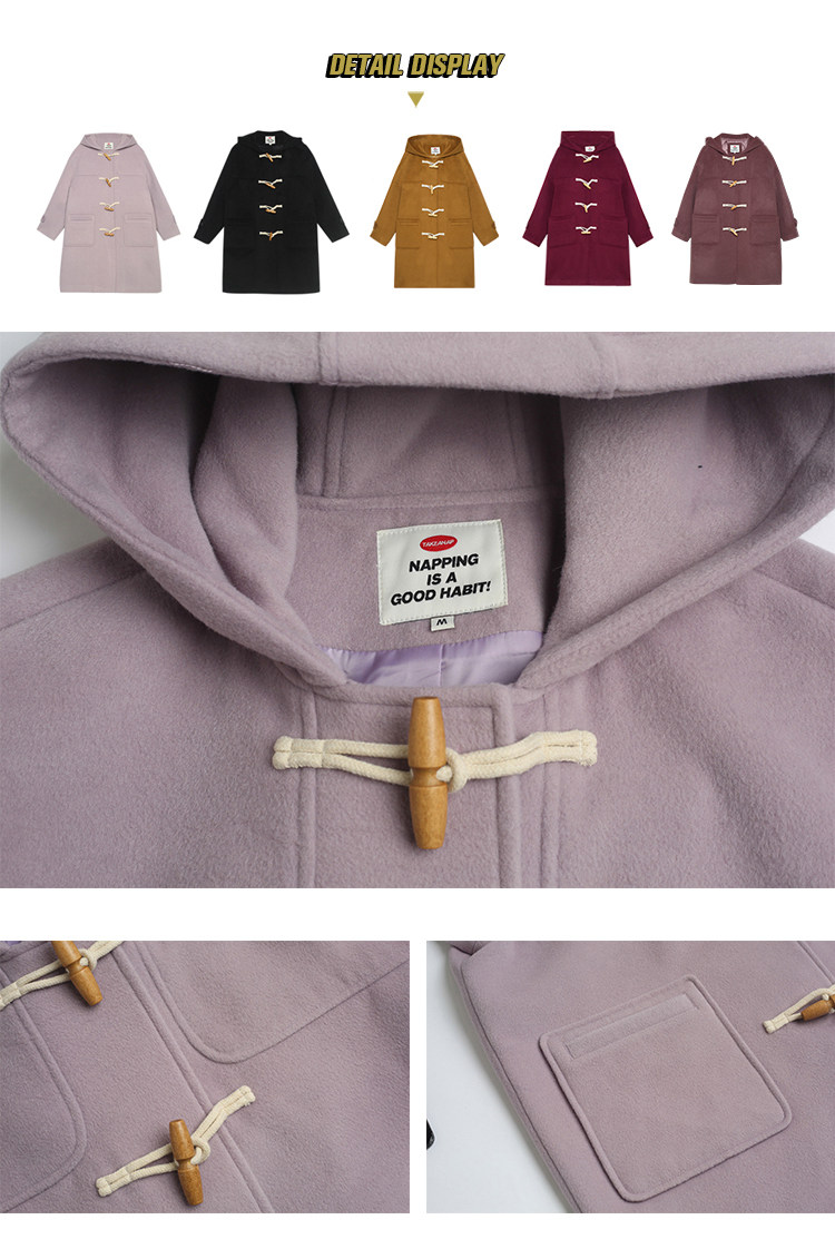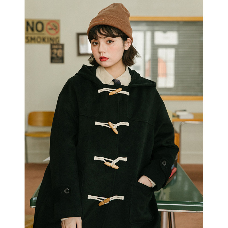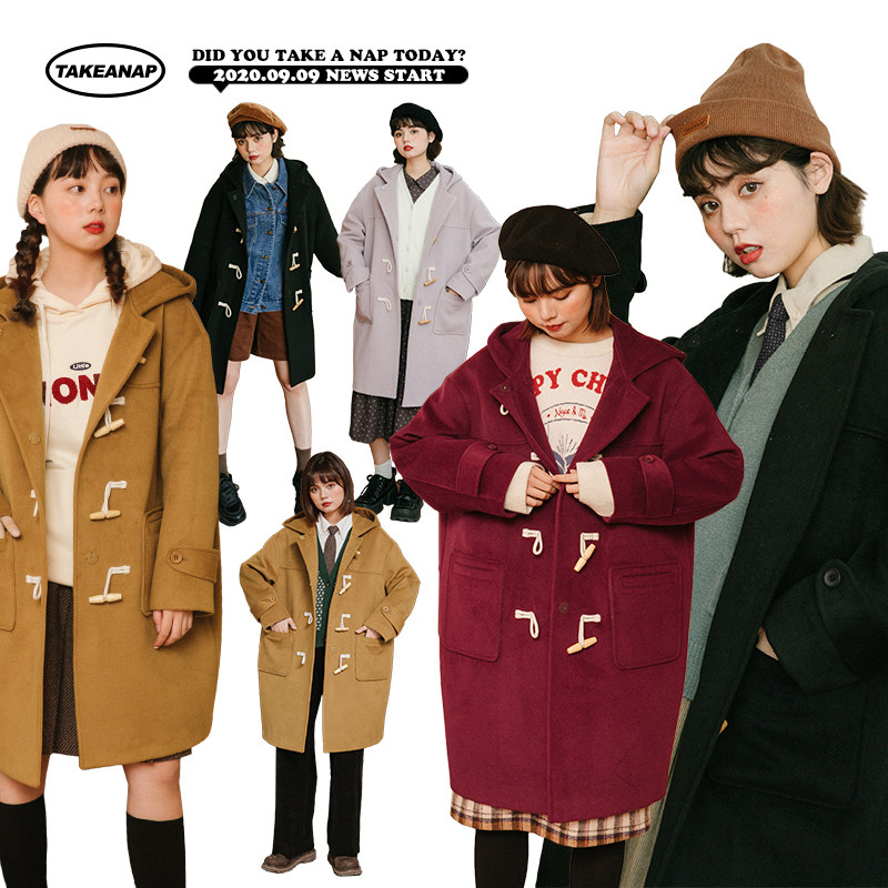 NAP домашний рог с застежкой шерсть пальто женский осень-зима винтаж Японский колледж ветер капюшон Шерстяной куртка Маленький ребенок