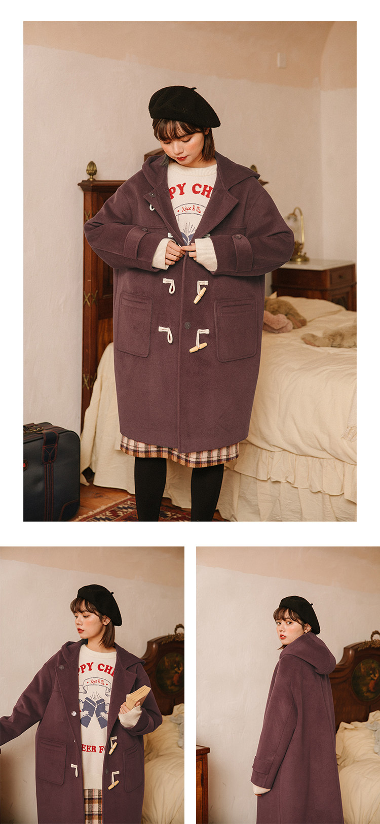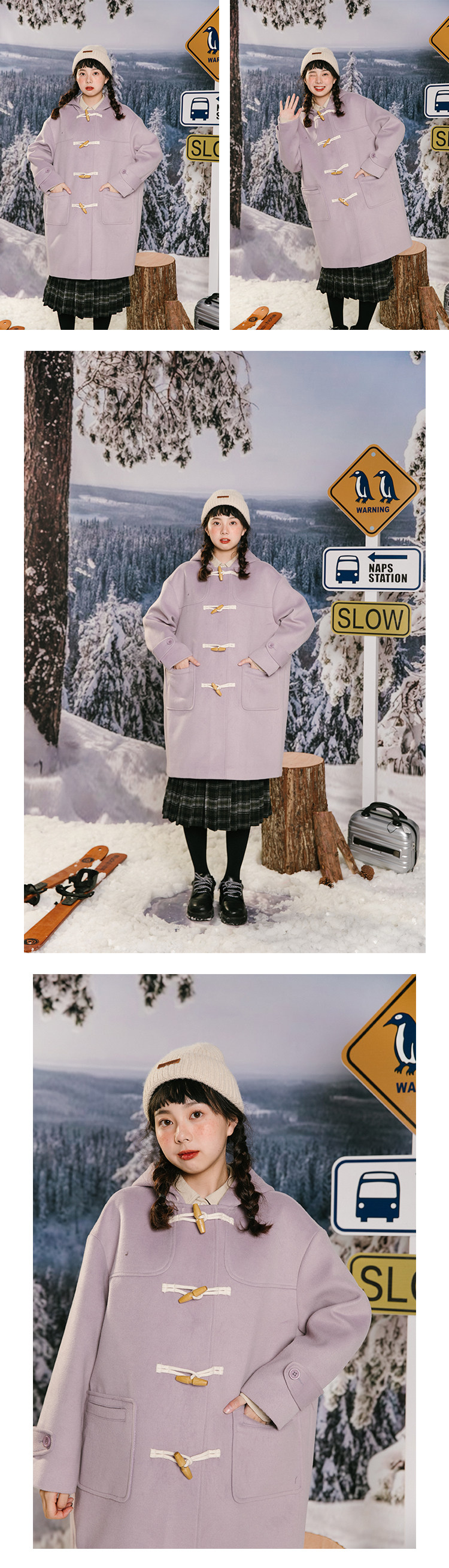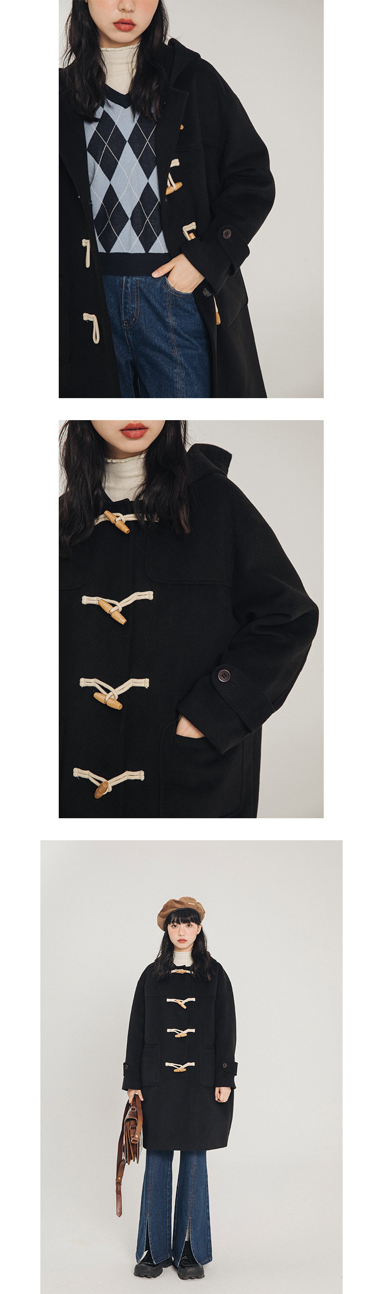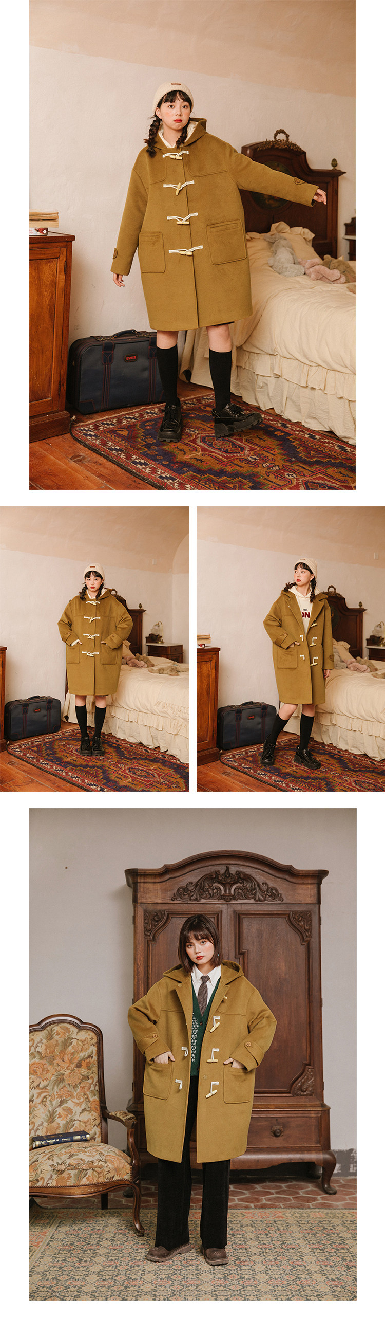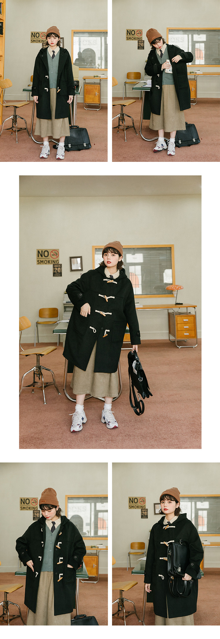 NAP домашний рог с застежкой шерсть пальто женский осень-зима винтаж Японский колледж ветер капюшон Шерстяной куртка Маленький ребенок