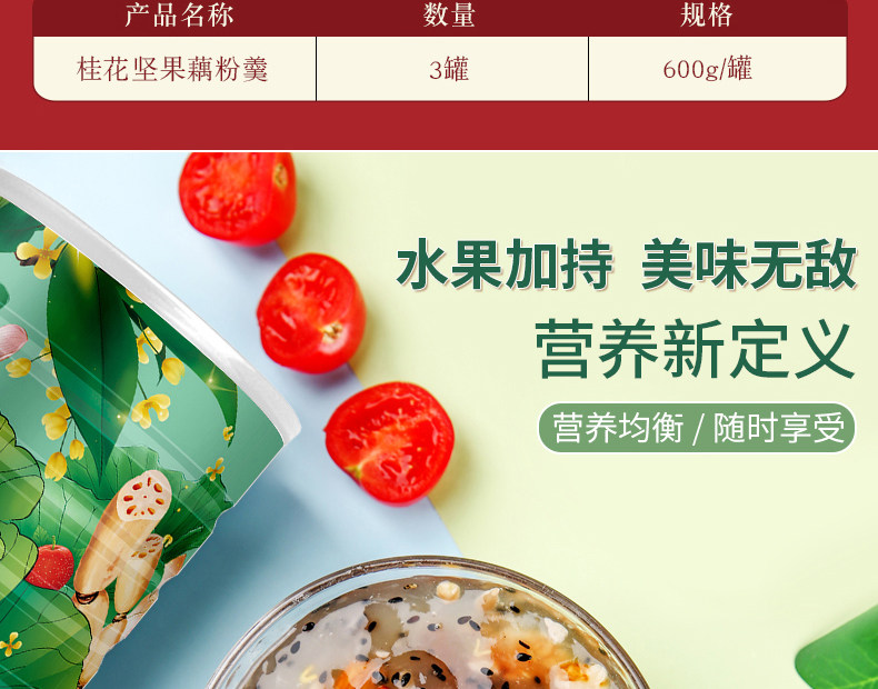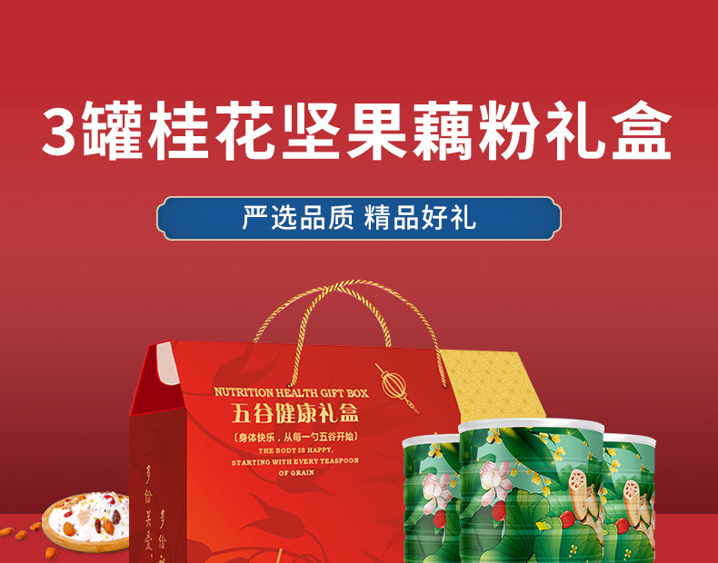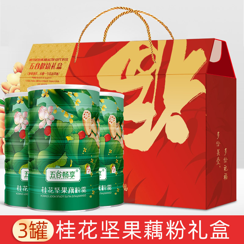 【Подарочная коробка】3 банки порошка корня лотоса орехов османтуса со сладким ароматом на завтрак в чистом виде поколение Лапша из корня лотоса в подарок Всего 1800 г церемониальной атмосферы