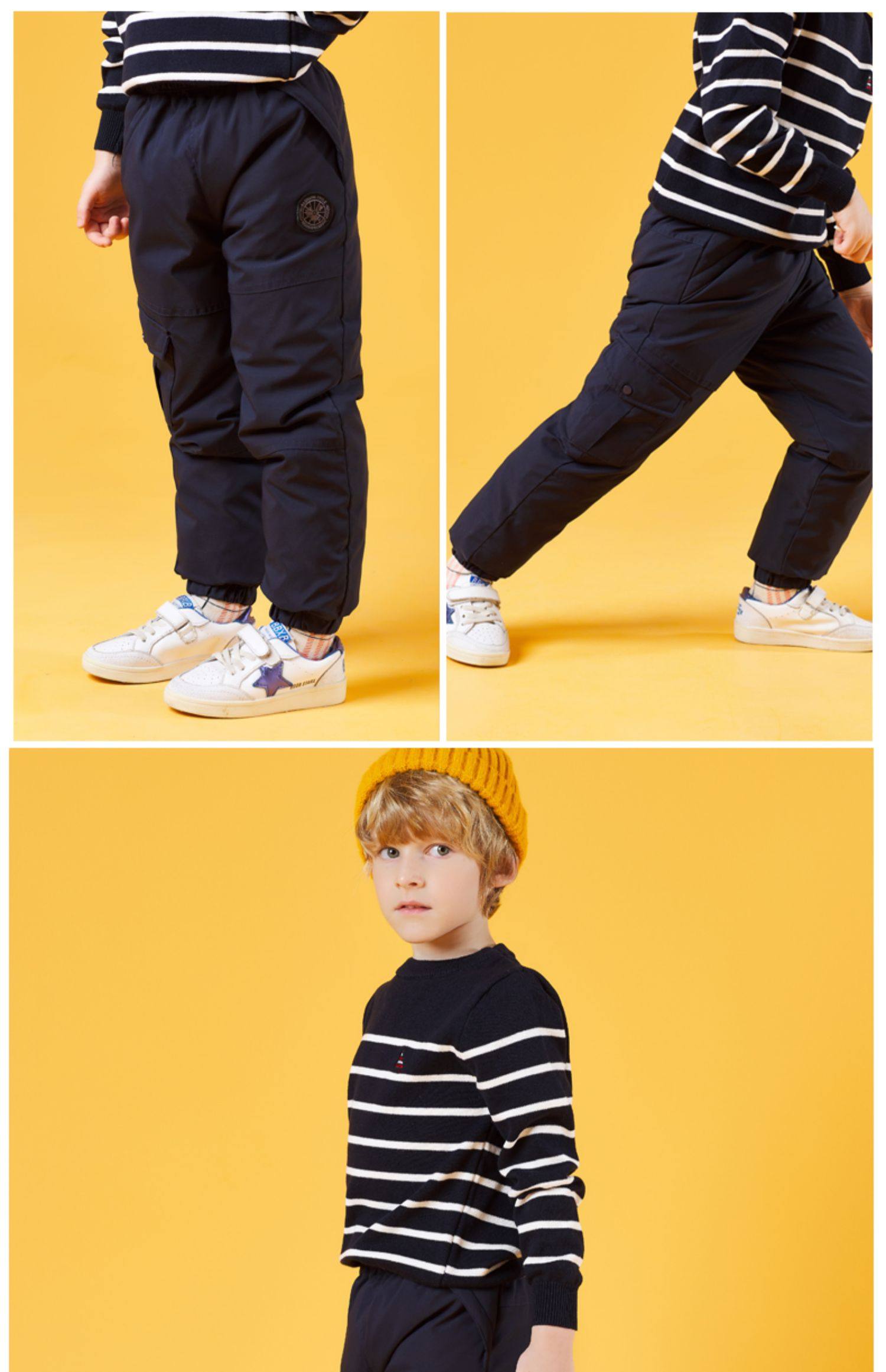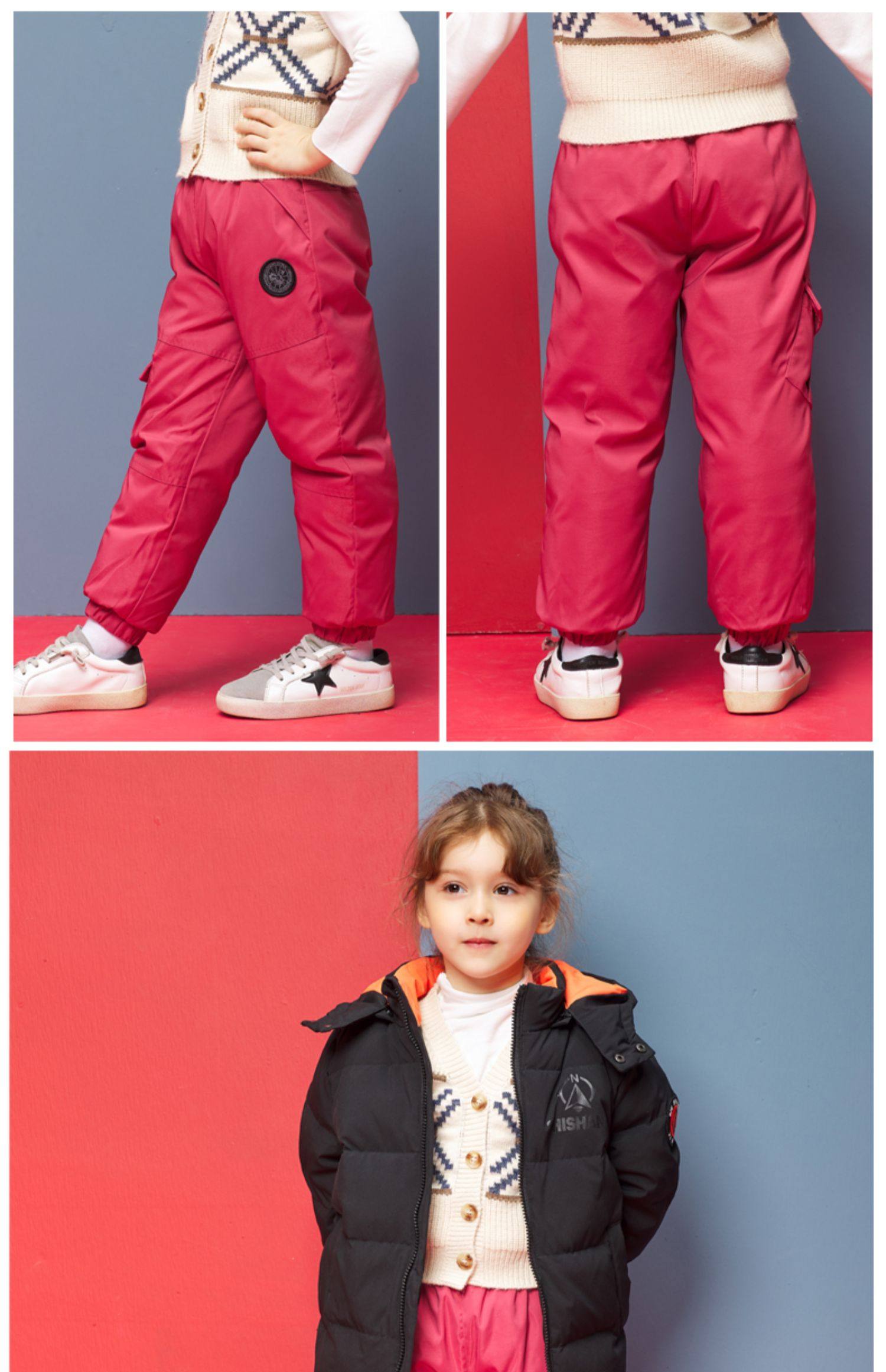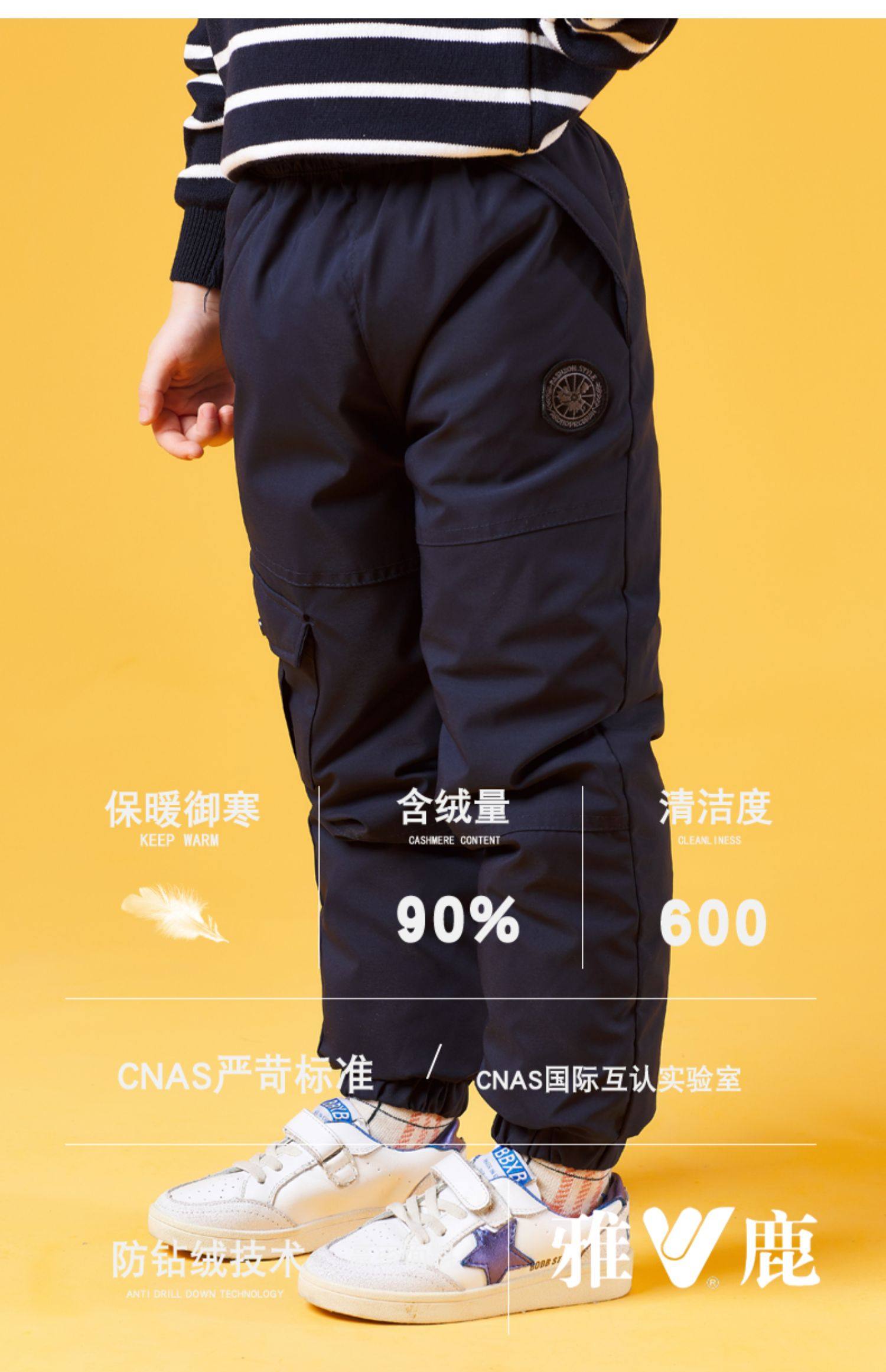 Алале детские Вниз штаны на мальчика на девочку утепленный детские Тянущие брюки удерживающий тепло Китайский ребенок зимний Штаны