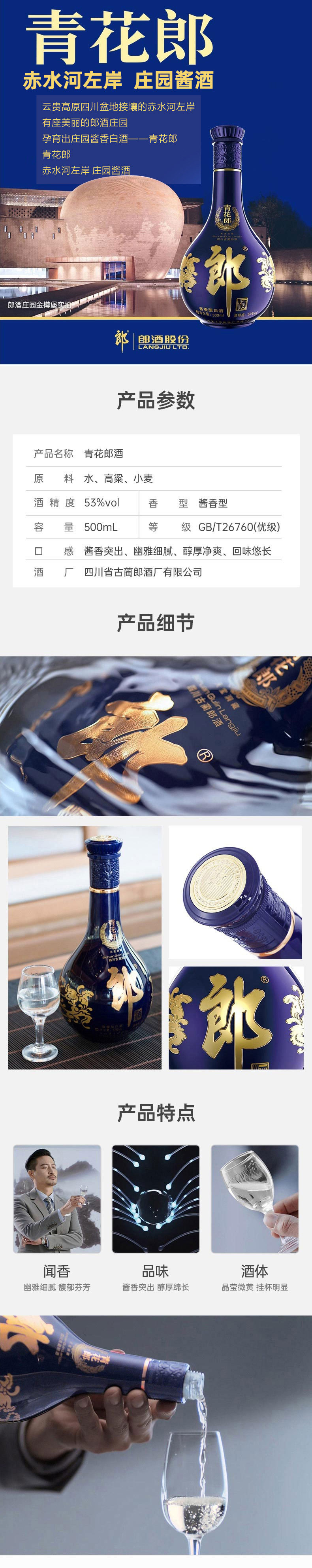 【Платить один потерял десять】Langjiu Qinghua Lang 53 градуса 500 мл*6 бутылок соуса вкуса белый ликер высокая Назовите вино в подарок Ликер