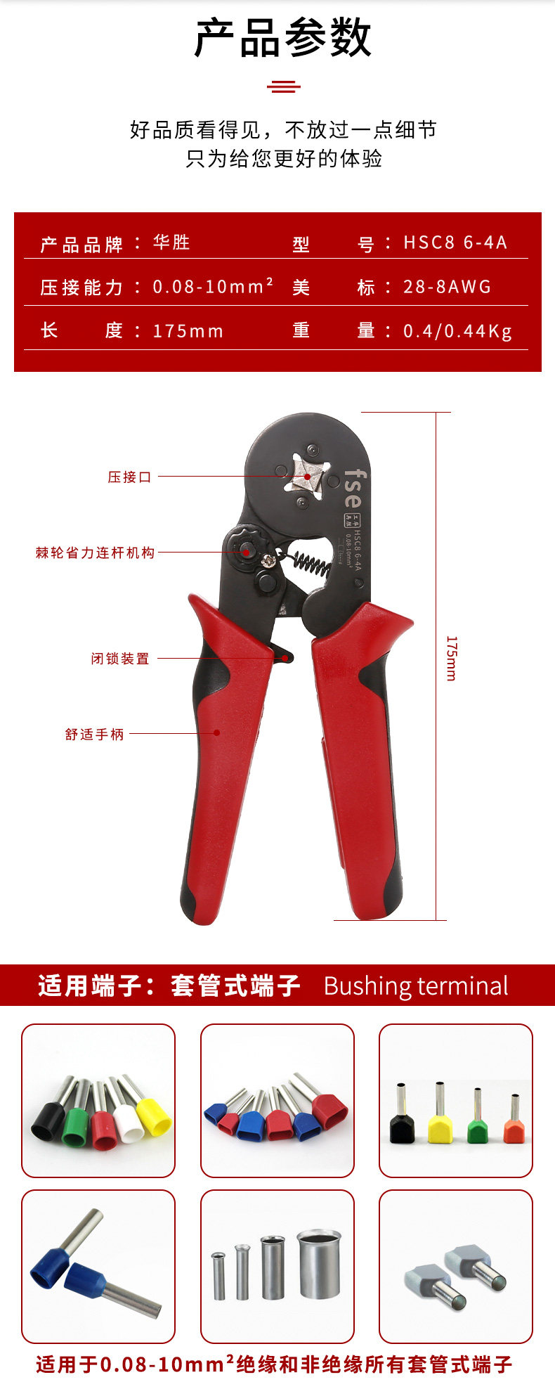 Обжимной инструмент Huasheng Tools с холодным зажимом вручную Электрик Быстрый электромонтаж европейского трубчатого типа стрелка Тип клещи для опрессовки клемм
