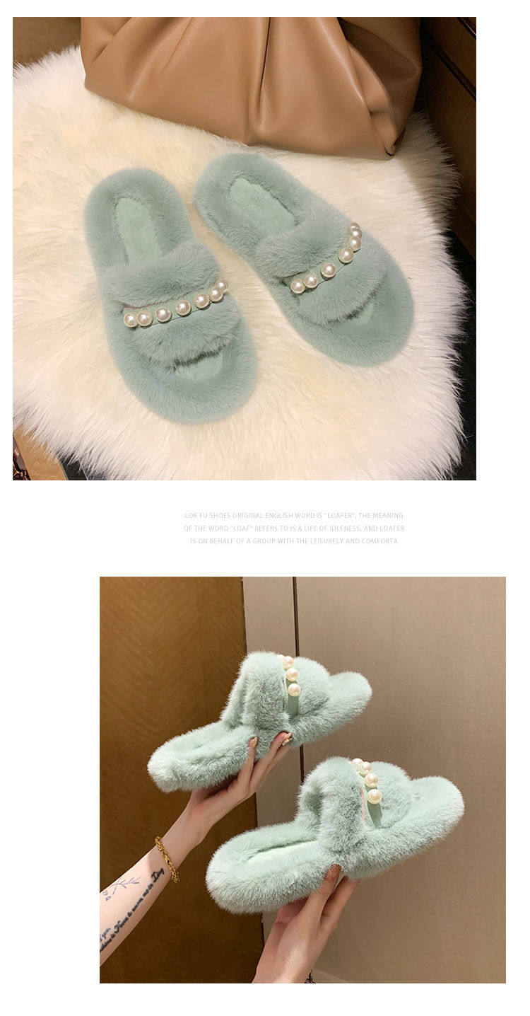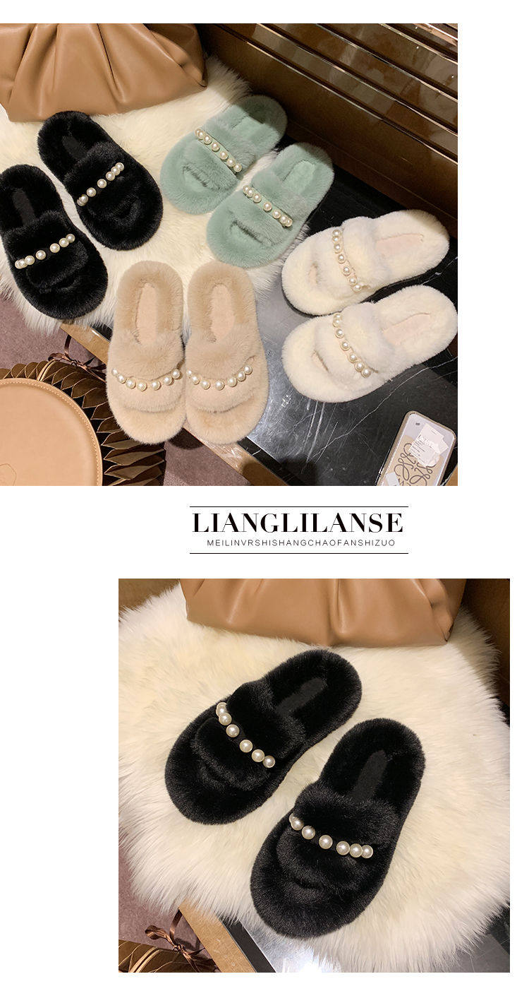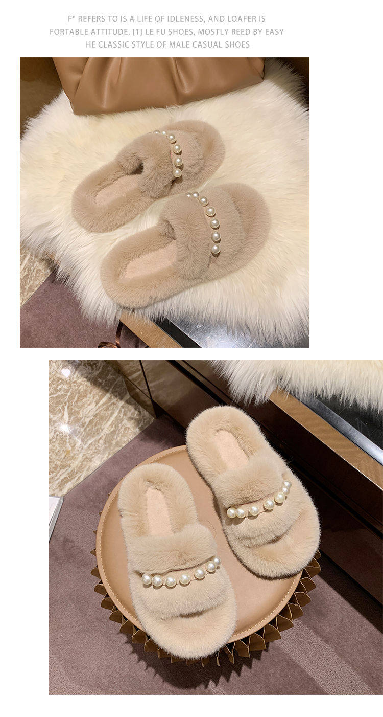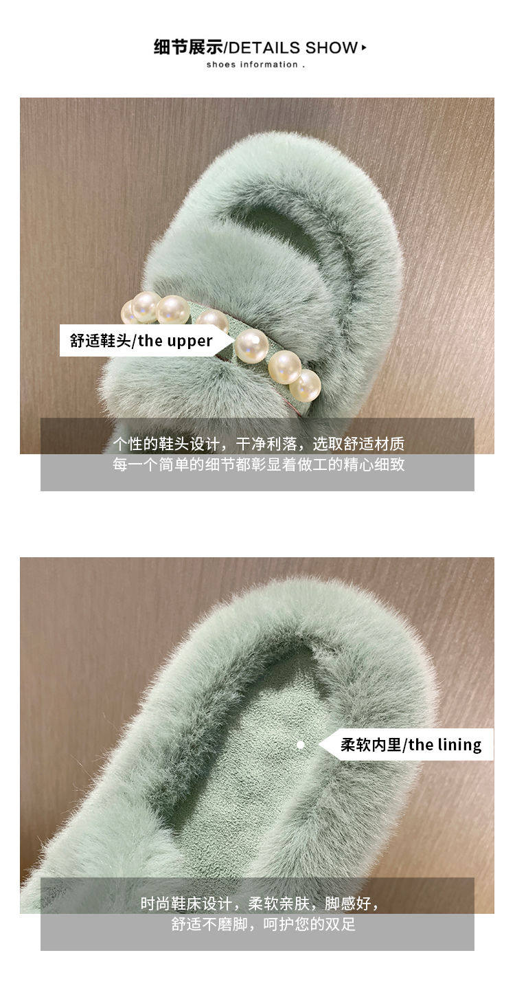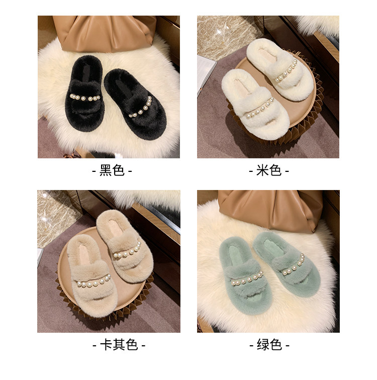 Мех тапки 2020 осень-зима новая коллекция с жемчужинами Мех тапки на плоской подошве замшевый удерживающий тепло хлопок тащить тапки Женщины Ins