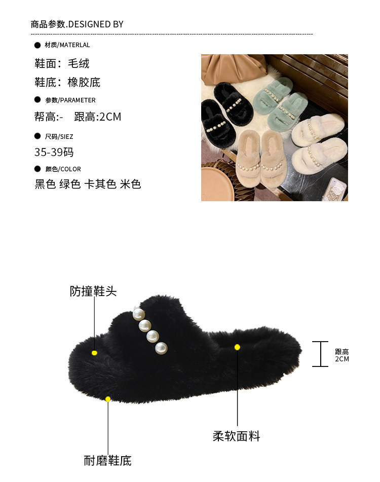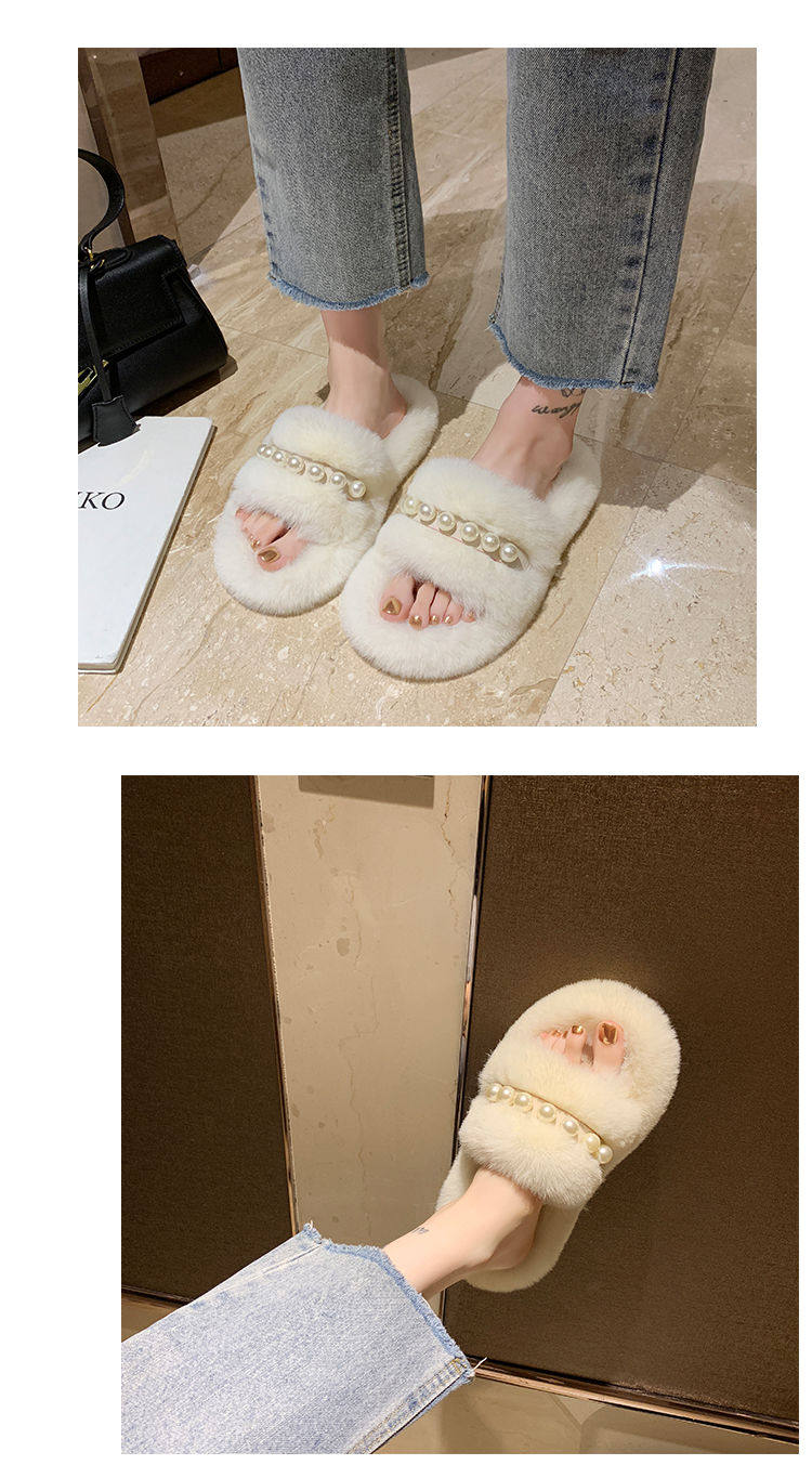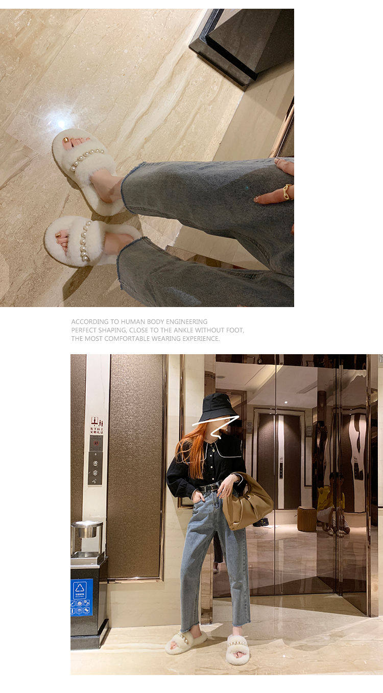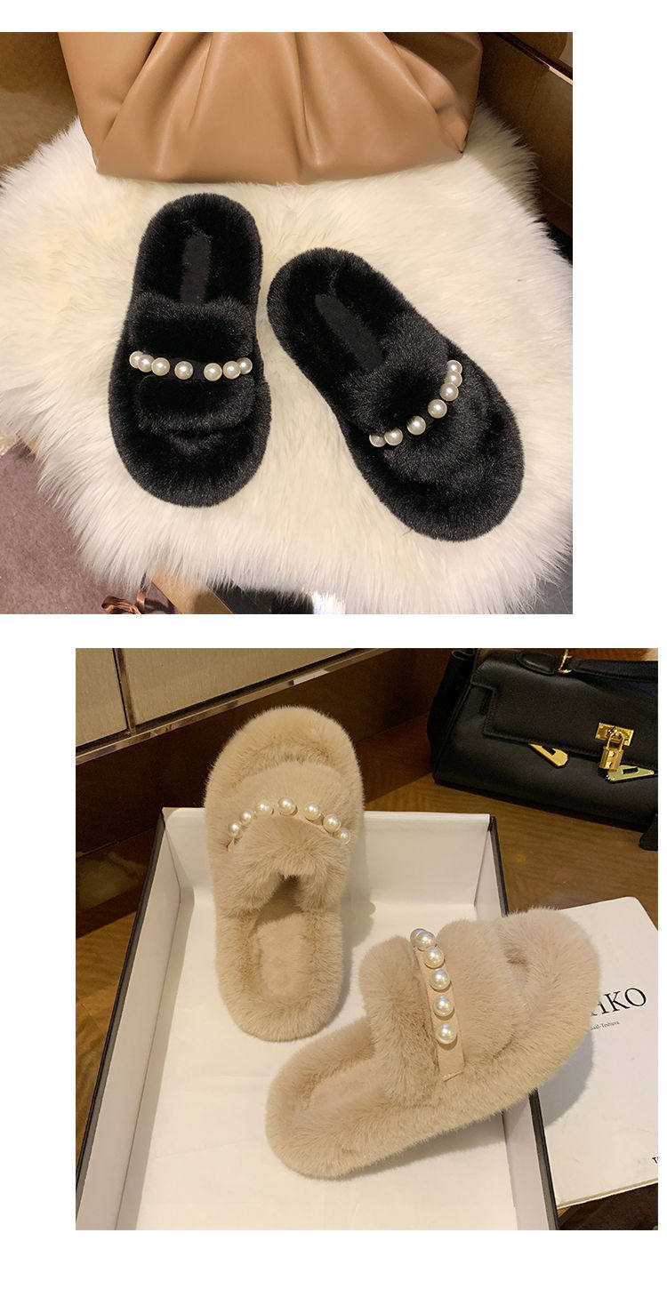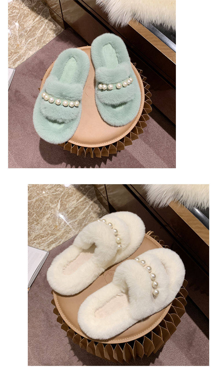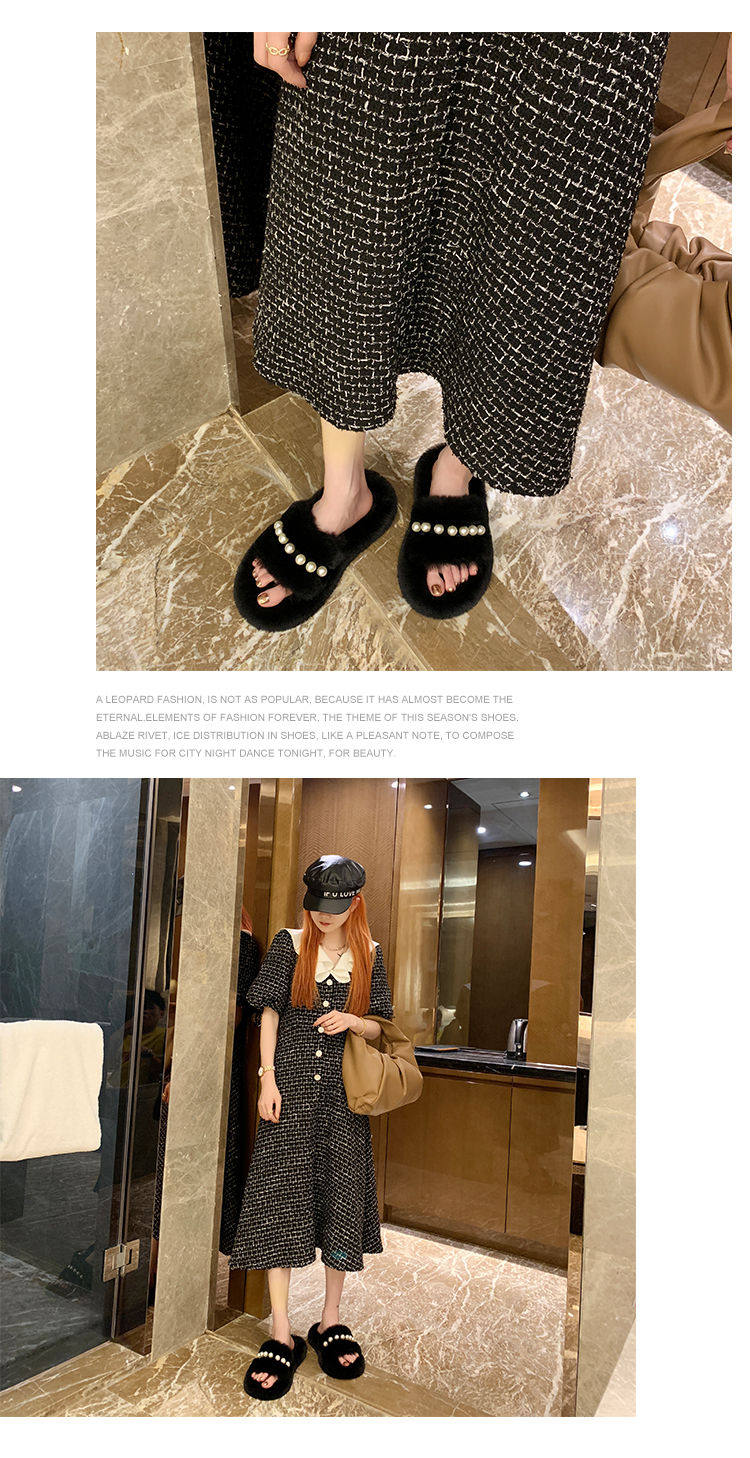 Мех тапки 2020 осень-зима новая коллекция с жемчужинами Мех тапки на плоской подошве замшевый удерживающий тепло хлопок тащить тапки Женщины Ins