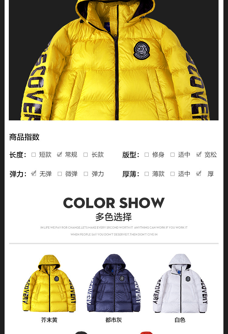 Discovery утиный пух пуховик Холодная одежда удерживающий тепло жакет мужской капюшон хлопок Одежда утепленный спортивный куртка