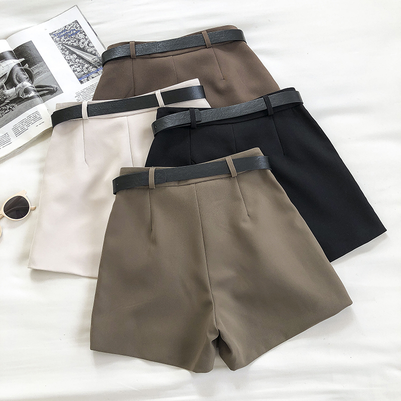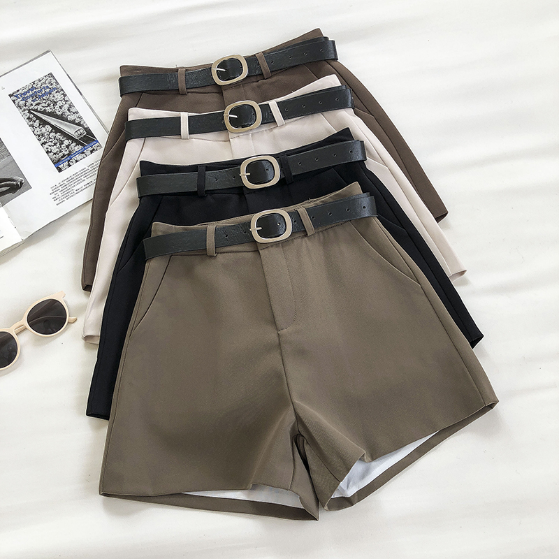 Корейская версия просто для отдыха женские шорты 2020 осень-зима новый товар новинка рыхлый и тонкий высокая Талия прямые широкие шорты ремень