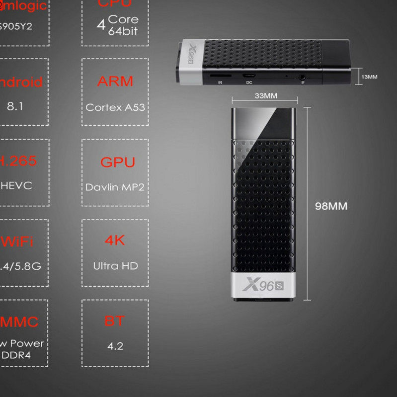 4K X96S Smart Mini PC Android 8.1 TV Box Amlogic S905Y2 DDR4
