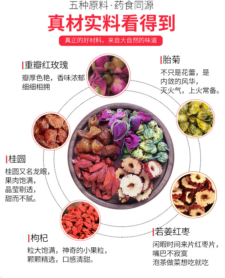 Розовый чайной групповой сочетание Chrysanthemum Health Tea Qi и женщина крови красный Zaosuiyuan 枸杞 五 宝