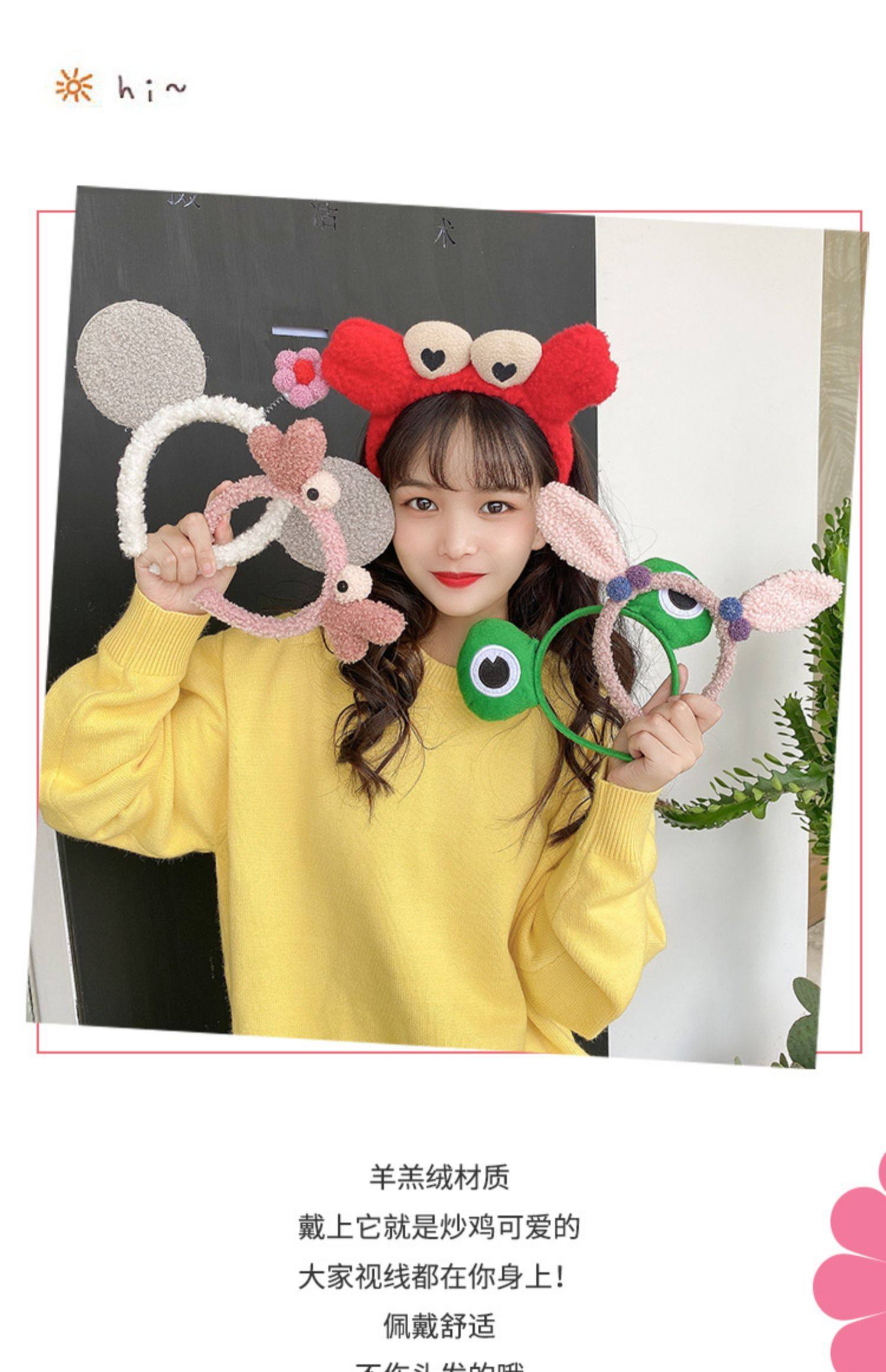 Симпатичная стирка для волос женская дикая повязка на голову сетка красный корейский 2021 головной убор с заячьими ушками новая коллекция Повязка на голову