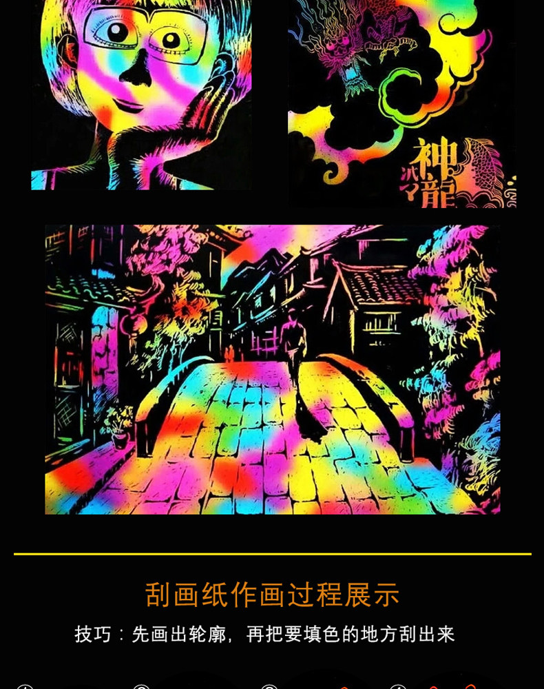 Детские Ослеплять цвет Бумага для заметок комплект черный Бумага для заметок формата а4, креативная живопись, ночная сцена, город, живопись, это студенческое искусство ручная работа Бумага Ванхуа разноцветный Зубочистки-царапины