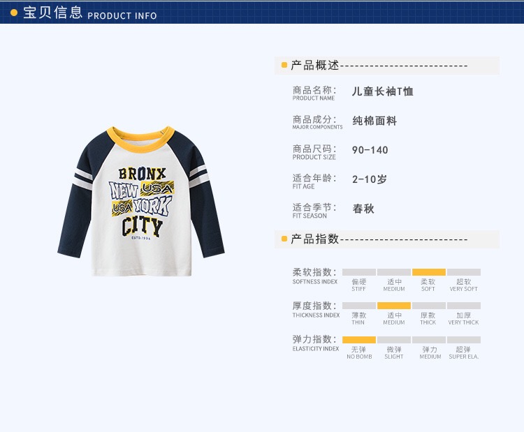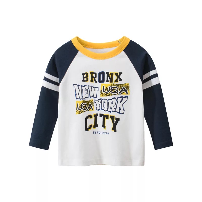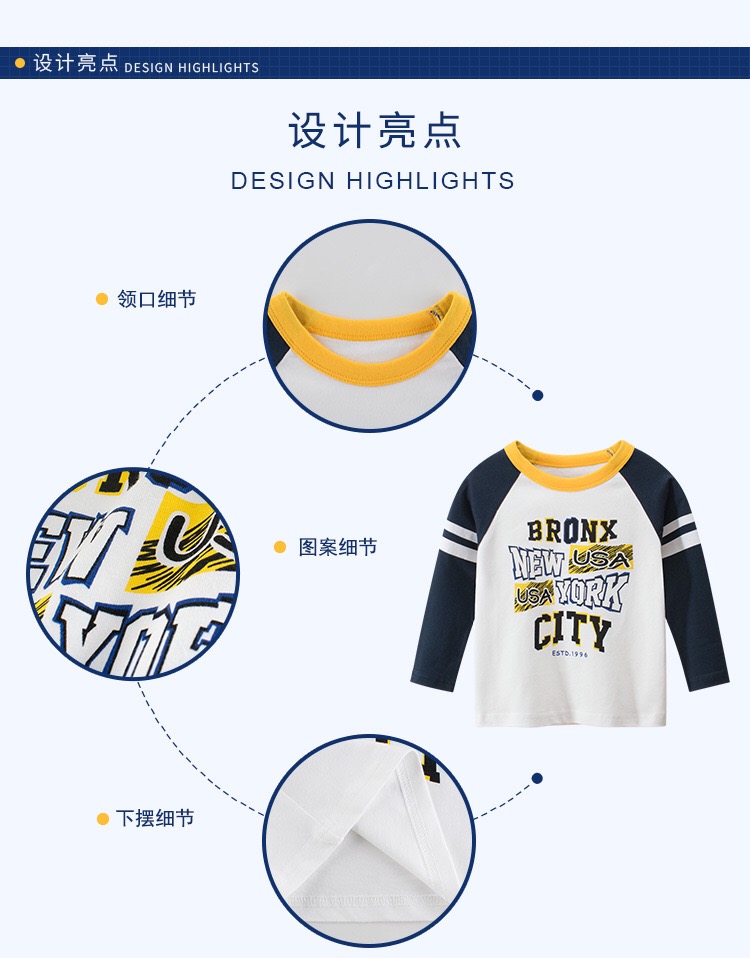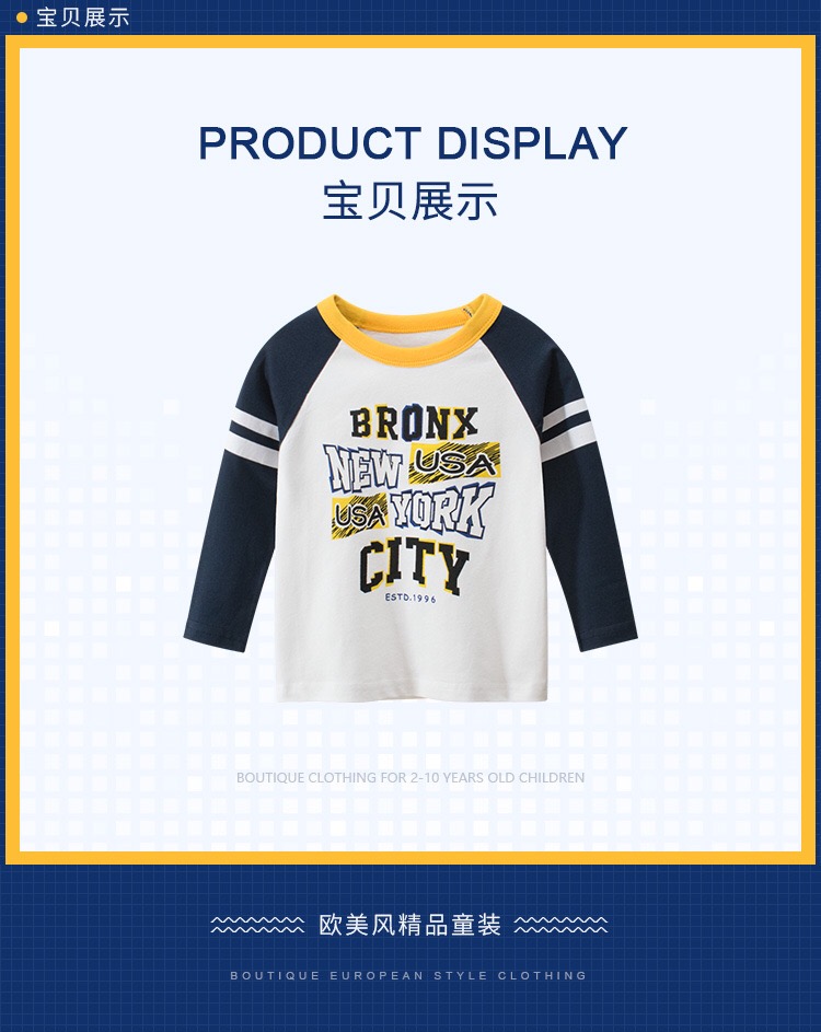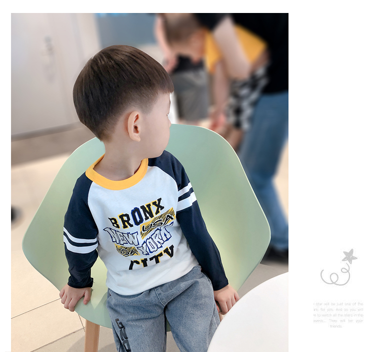 Детские Весна на мальчика длинный рукав Футболка чистый хлопок демисезонный новая коллекция Ребенок для отдыха верх Прилив детские Яркая рубашка тонкая стиль