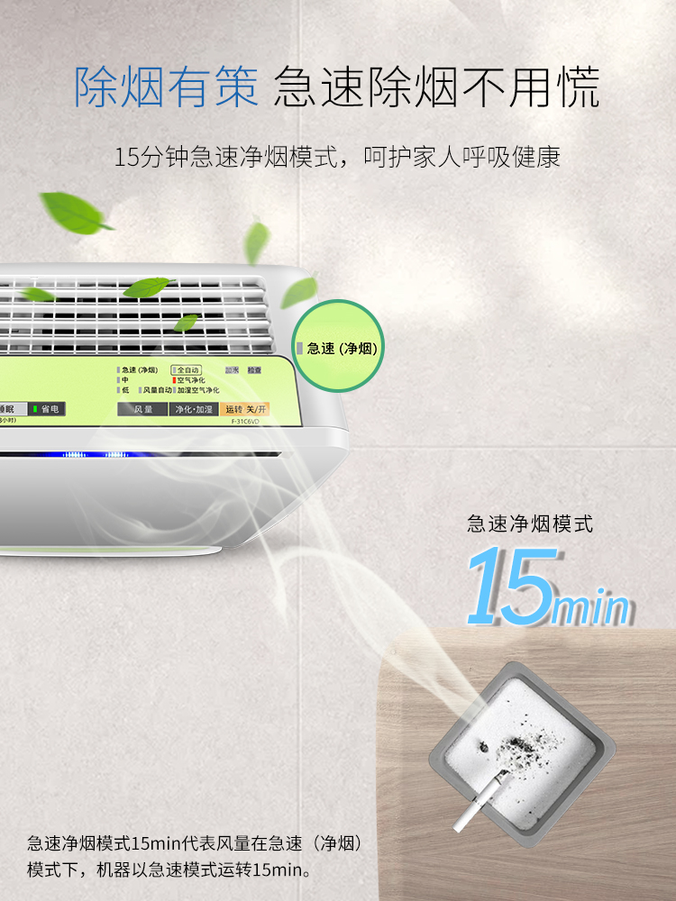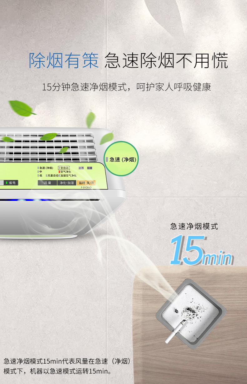 Свободный низ Очиститель воздуха Главная Стерилизация PM2.5 Увлажнитель пыли Средняя машина для очистки дыма F-31C6VD