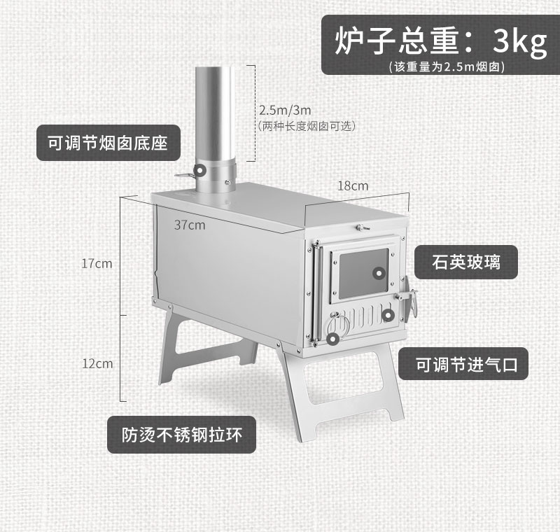 - Квадратный дрова печи титановый сплав 3м дымоход
