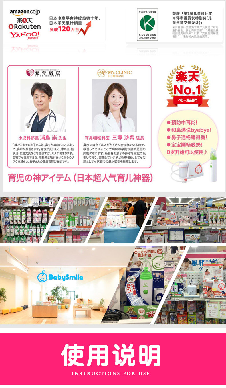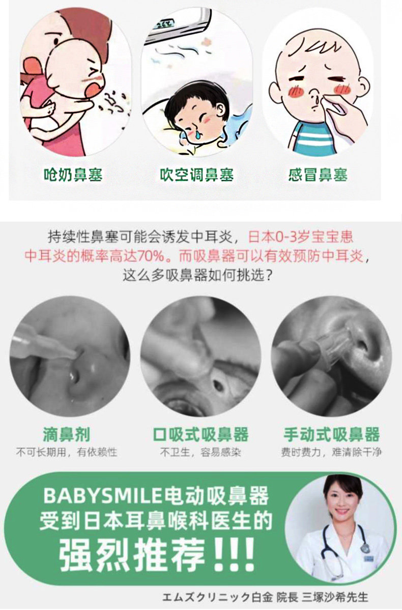 BabySmile для младенцев и малышей из Японии новый Рожать детские Доступен переносной беззвучный режим стиль Электрический назальный аспиратор