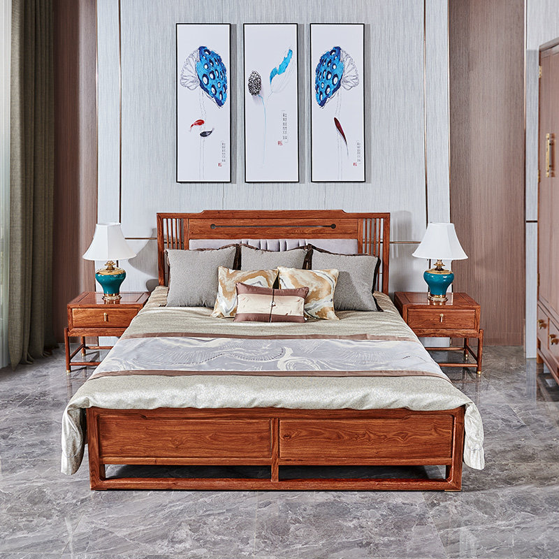 Красный Деревянная мебель Ежик Hedgehog Ribboket Двуспальная кровать Спальня новый Китайская легкая роскошная кровать с твердым деревом из розового дерева 1,8 метра главная спальня