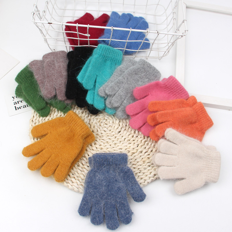 Детские перчатки осень-зима удерживающий тепло Родитель-ребенок стиль корейская версия мех кролика трикотажный кислотный Простой твердый цвет мужские и женские прилив стиль