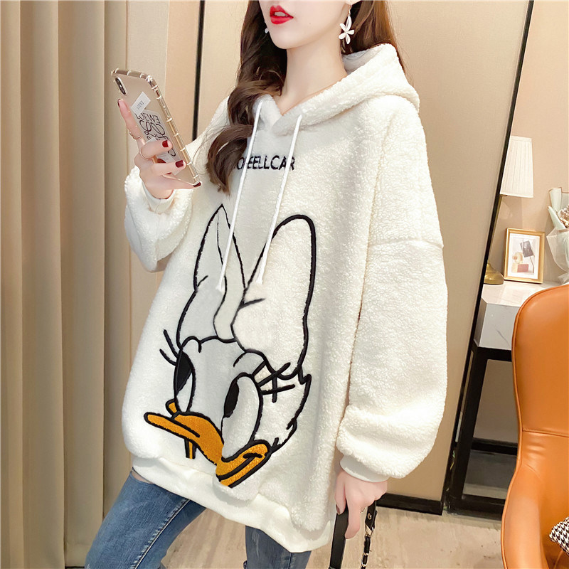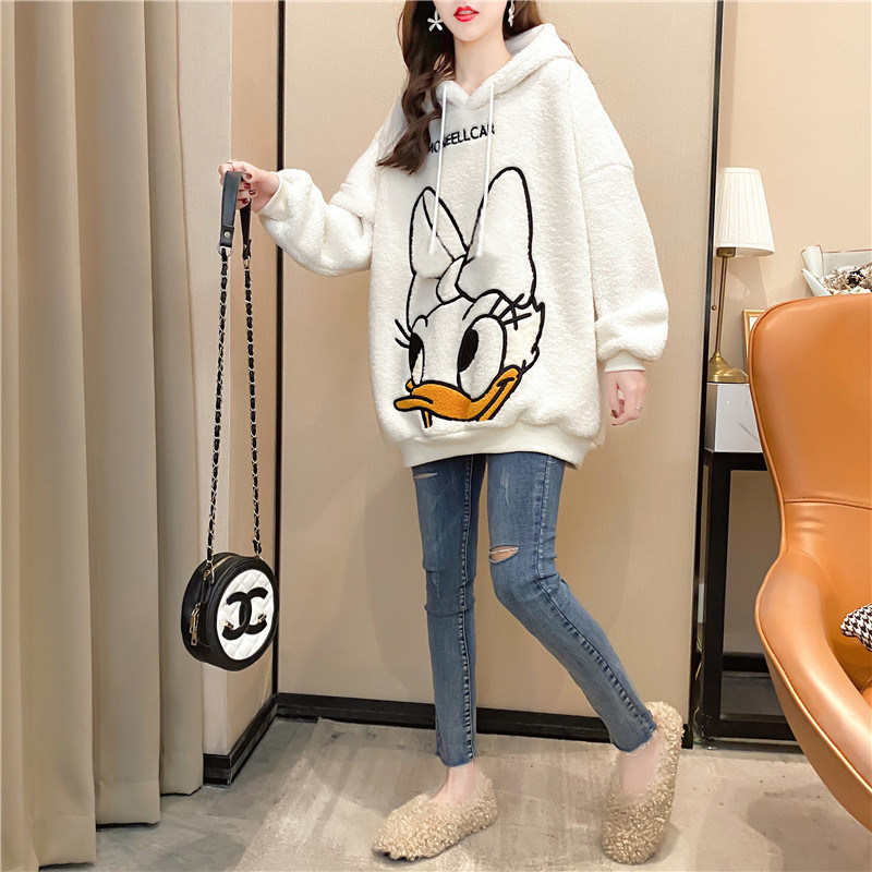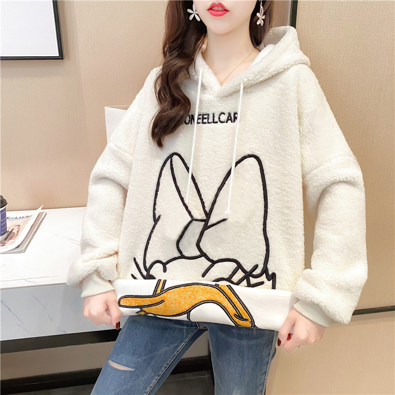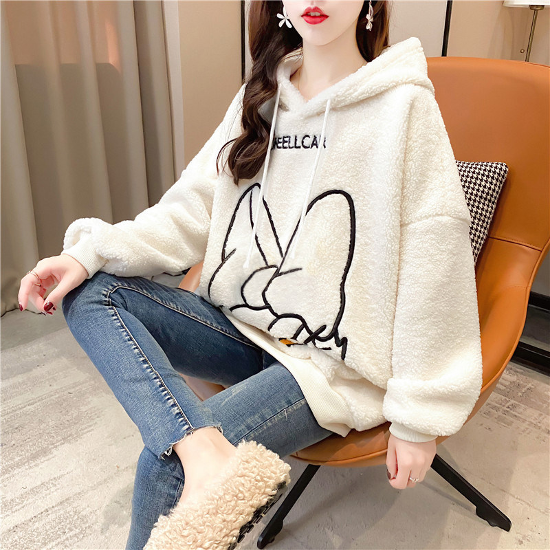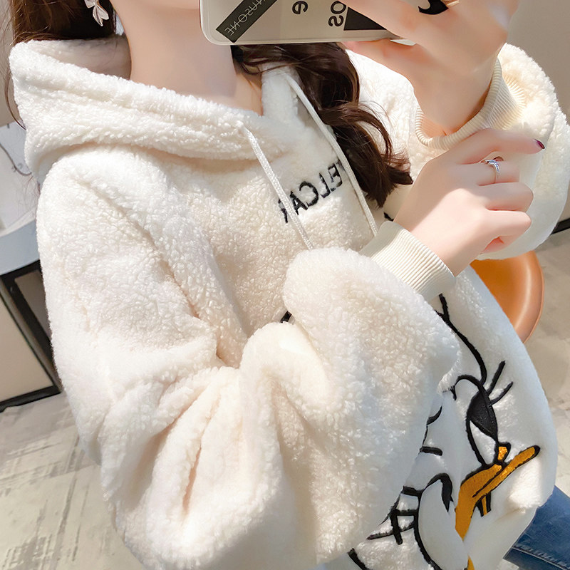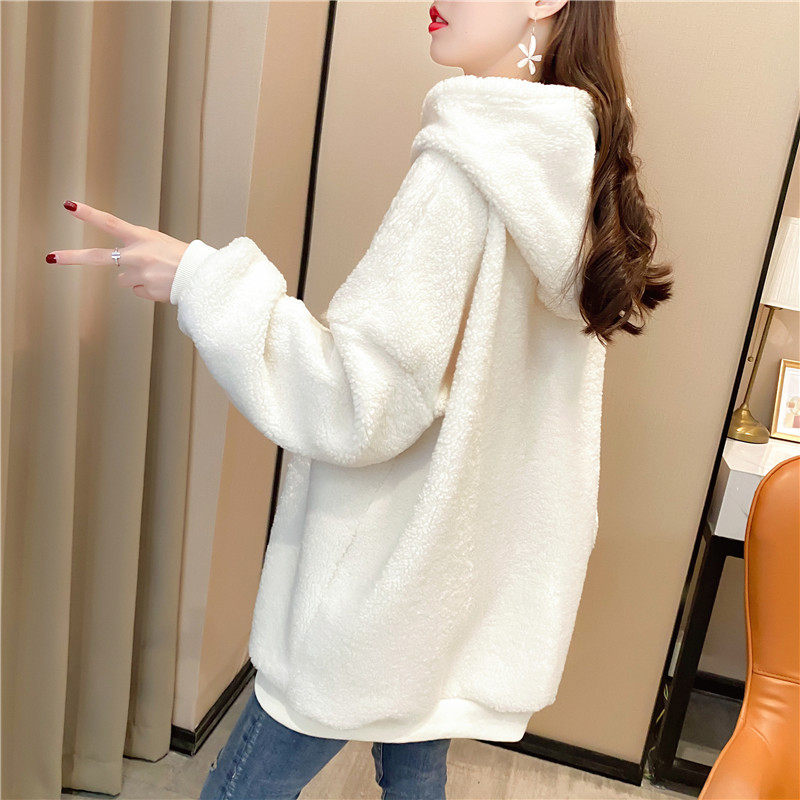 Овечья шерсть куртка Женский корейская версия Свободный большой размер Женская одежда осень-зима Сезон 2021 года новая коллекция замшевый утепленный капюшон толстовка Женский