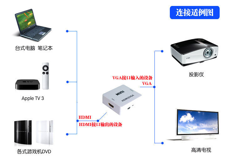 HDMI в VGA - это один стиль высокая Ясное видение частота Конвертер, который может конвертировать данные HDMI слово Сигнал преобразуется в аналоговый сигнал VGA и аналоговый звук. частота сигнал. Сигнал HDMI, используемый для подключения PS3, используется для XBOX360, синий Легкий DVD, высокая Чистые приставки, компьютеры, ноутбуки и т. Д. Ты можешь не имеет Интерфейс HDMI обычный Телевизор верх Легко смотреть высокая Ясное видение частота .