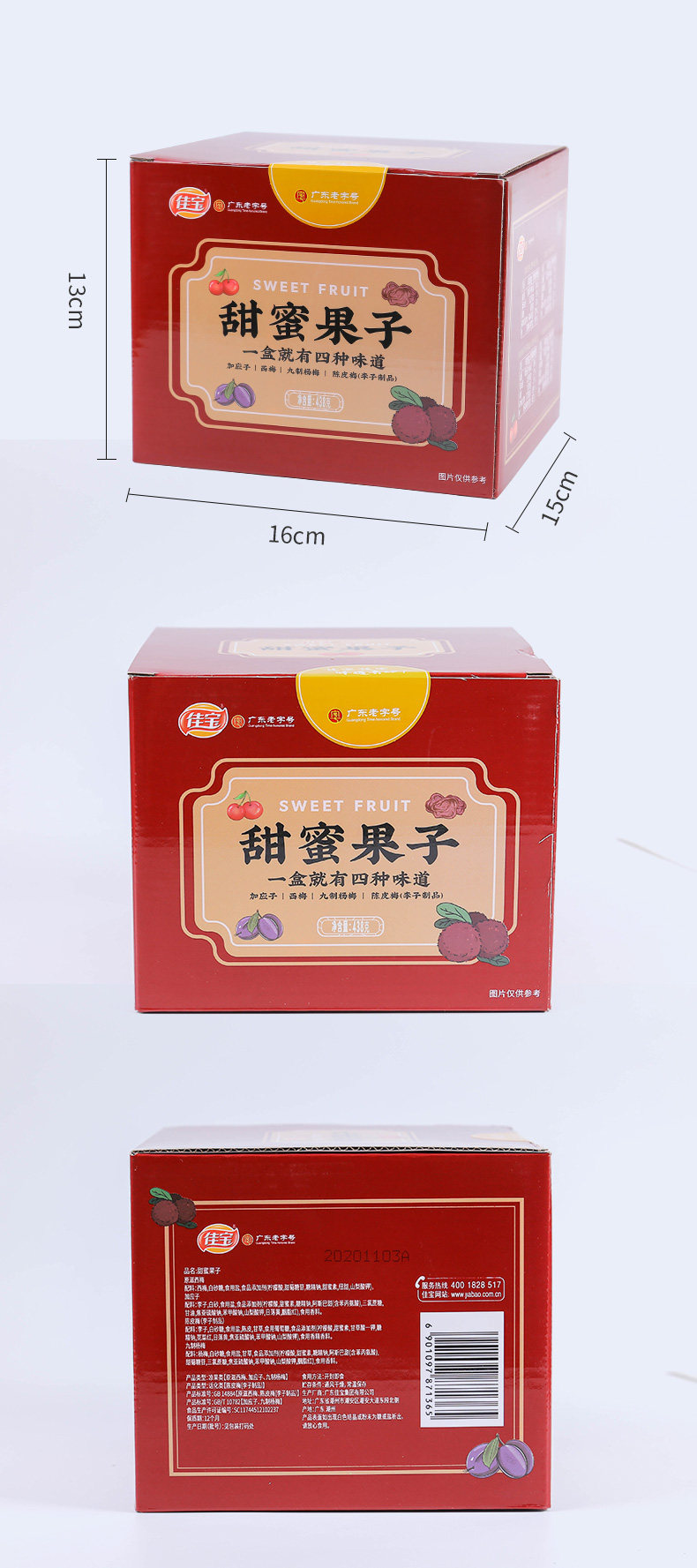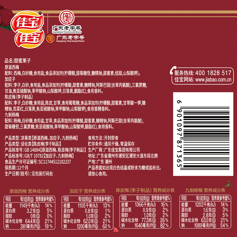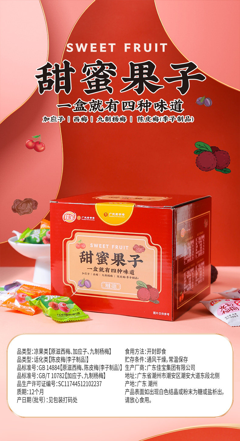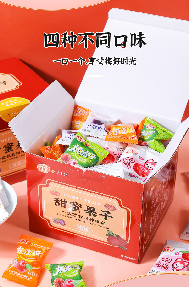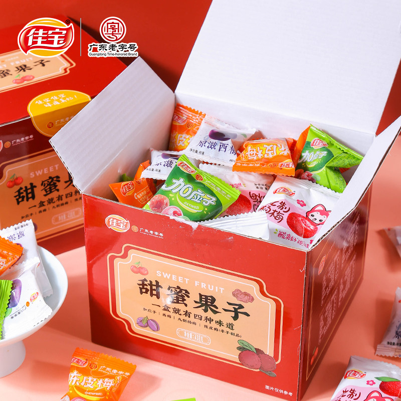 Ассорти сладких фруктов Jiabao в коробке, а также Yingzi, Prune, Chenpi Mei, Nine Red Bayberry, сушеная китайская слива, сливовые закуски