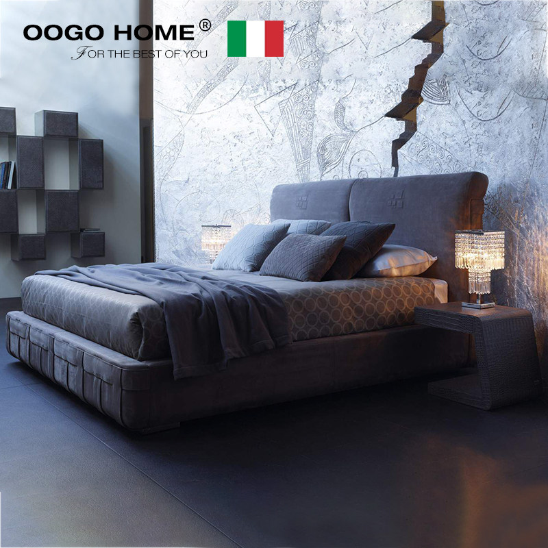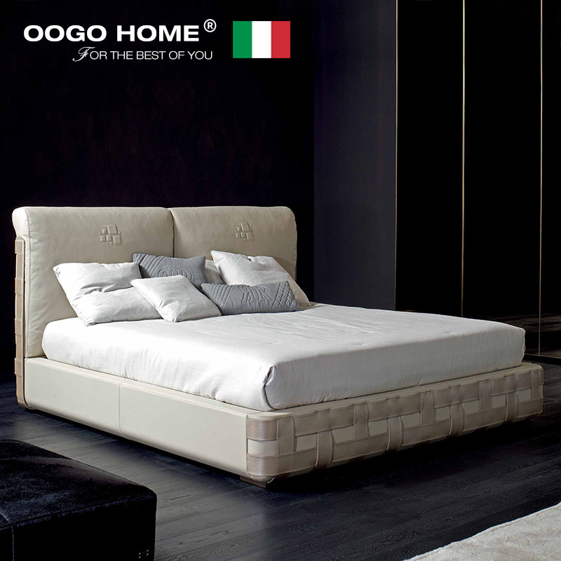 Европейская мебель Италия Rugiano Minimalistic Home из натуральной кожи Кровать виллы легкая роскошная двуспальная кровать