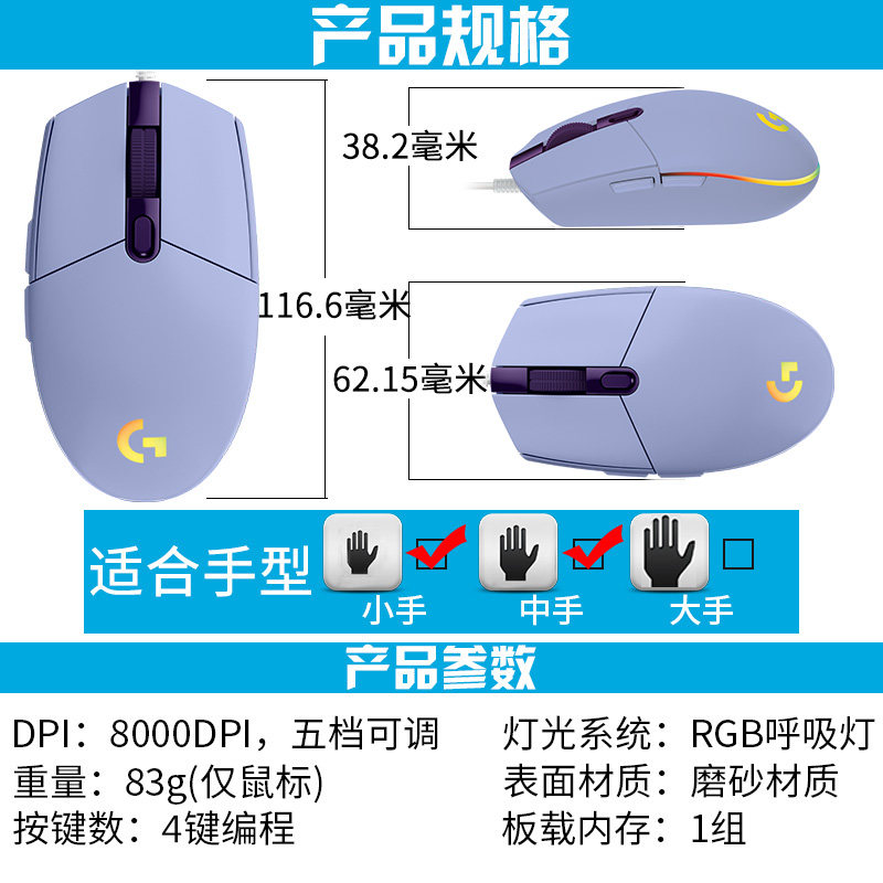 - G102 два поколение сиреневый + Мышь стандартный Pad + ножные наклейки