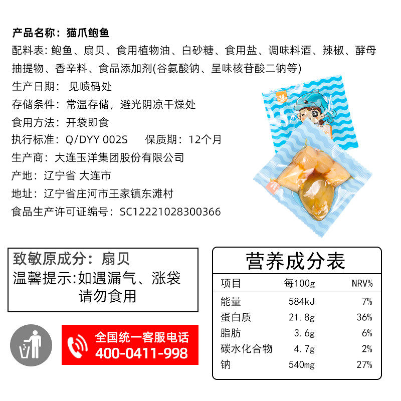 Yuyang Cat Paw Abalone 68G 食 abalone смешанный милый комбинация пряные закуски из морепродуктов для отдыха еда