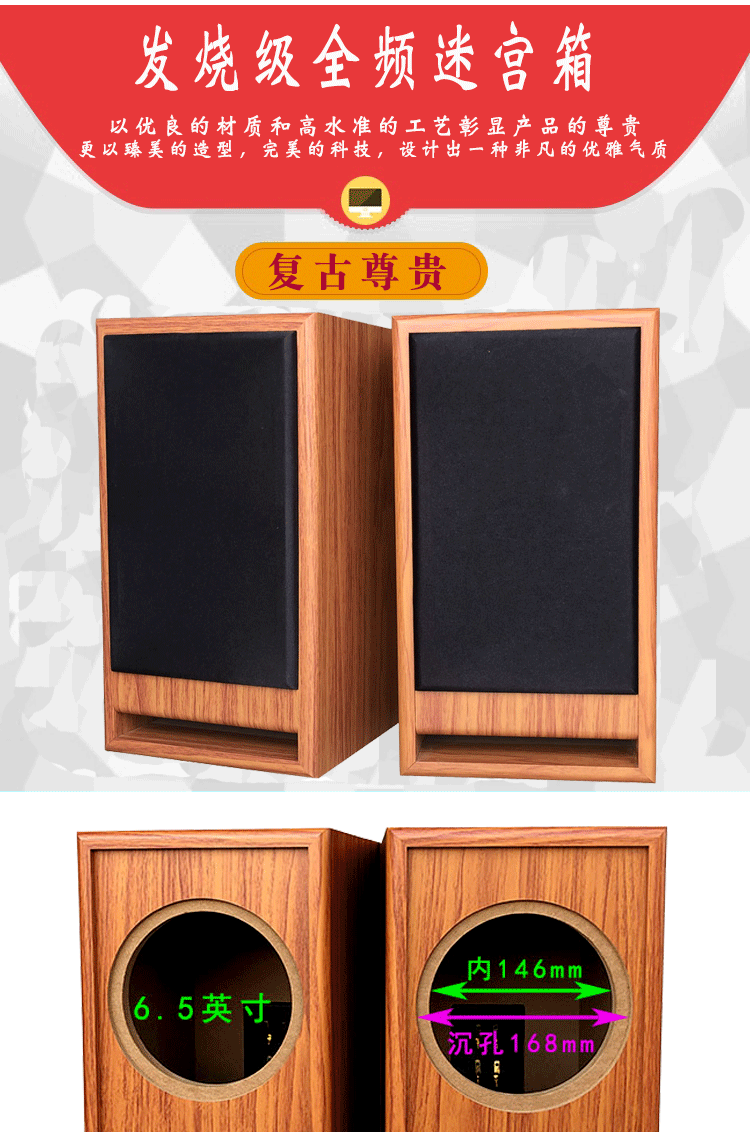 6,5-дюймовый лабиринт динамик пустой коробчатый уровень лихорадки тела полностью частота Деревянный аудио коаксиальный динамик DIY Shell
